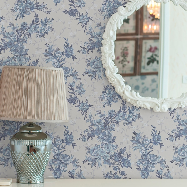 Pastellivärinen kukkakuvio vaalealla taustalla
