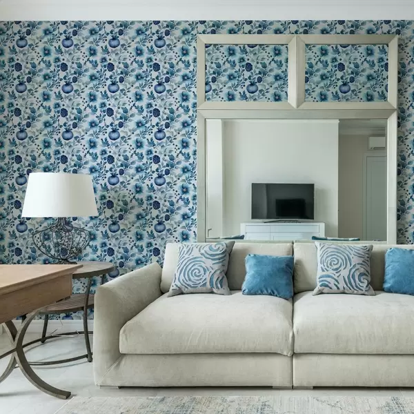 Tapetti Sinisiä kukkia ja granaattiomenoita Nr. a00002