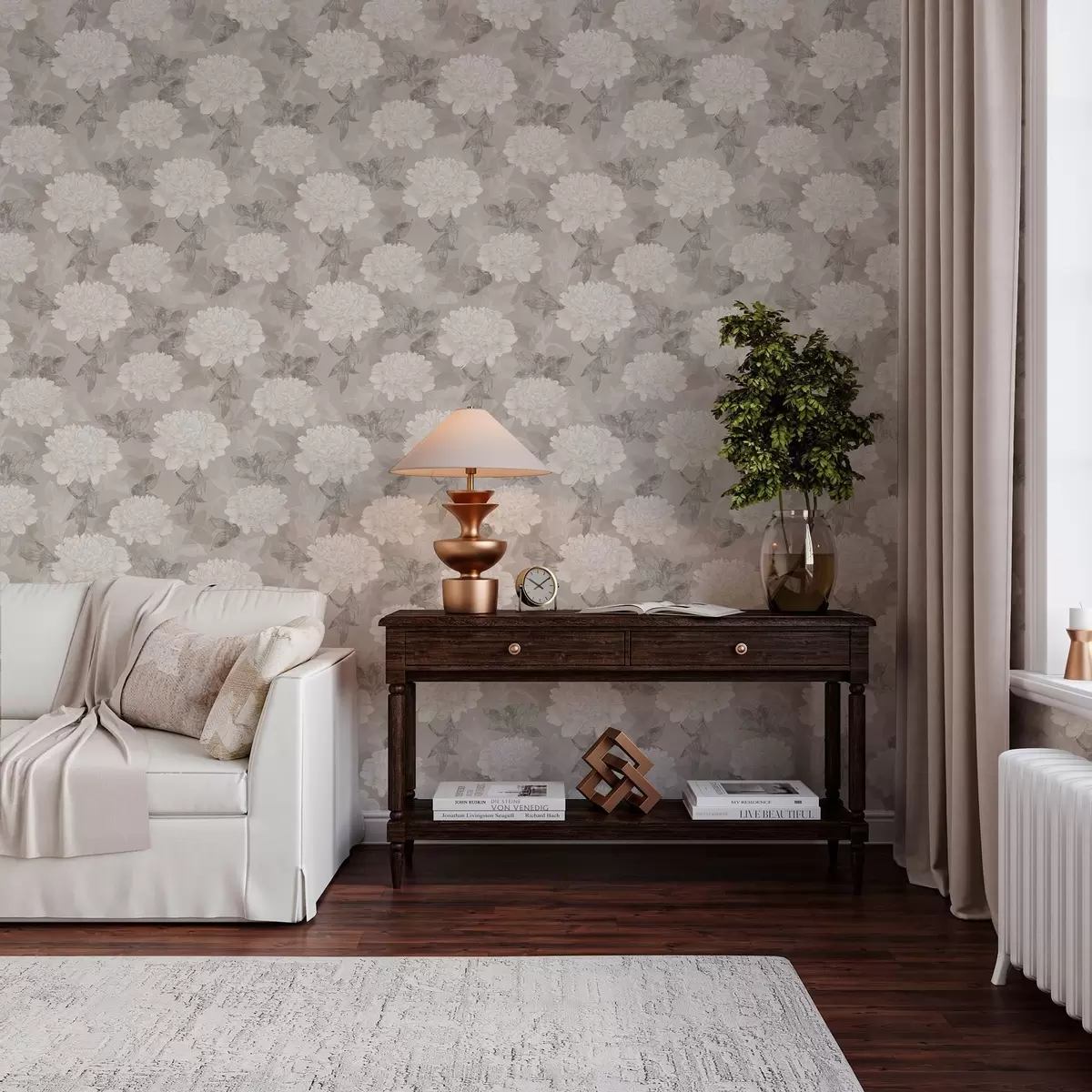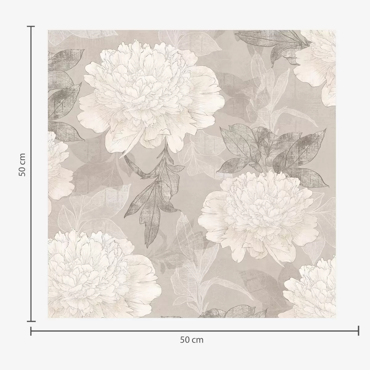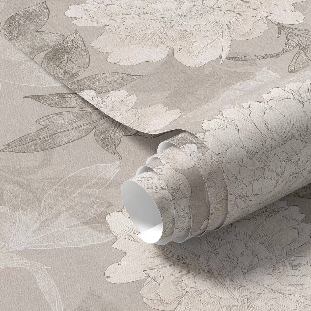 Tapetti Vaaleat pionit ja lehdet grunge-tyylillä Nr. a00005
