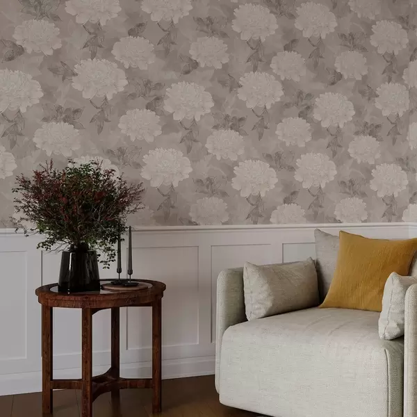 Tapetti Vaaleat pionit ja lehdet grunge-tyylillä Nr. a00005