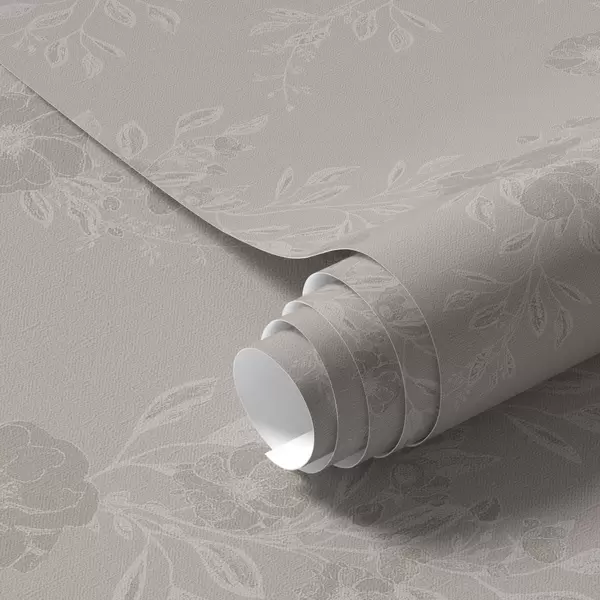 Tapetti Kukkia vaaleilla lehdillä harmaalla taustalla Nr. a00006v1