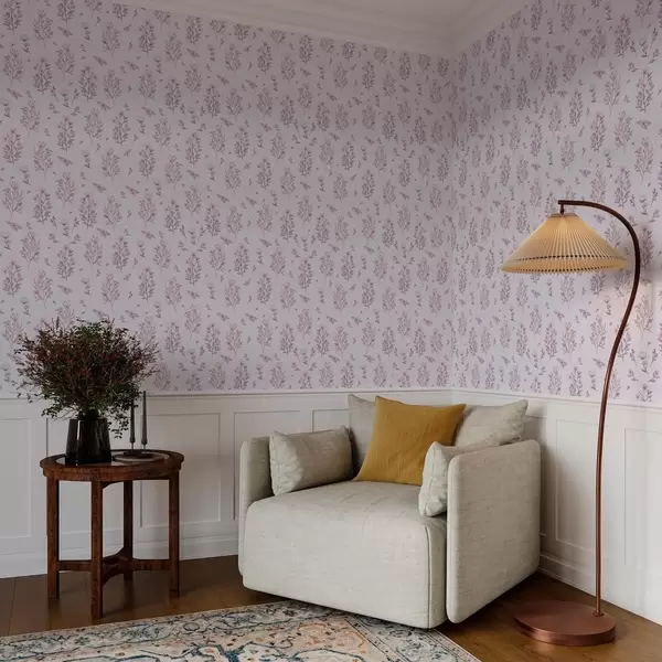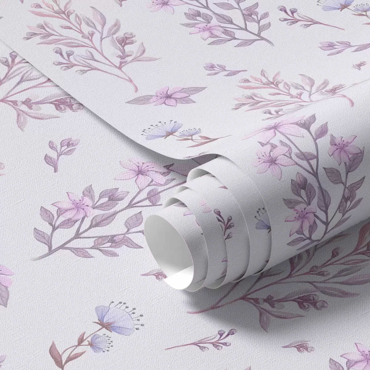 Tapetti Herkät kukat varret valkoisella taustalla Nr. a00016