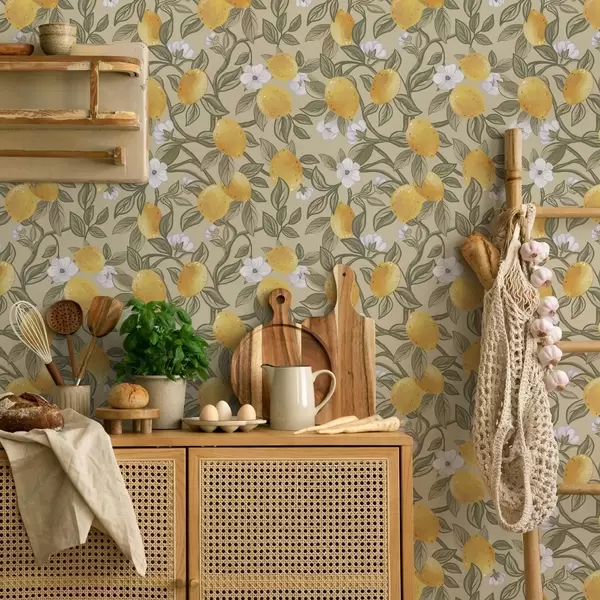 Tapetti Kukkia ja keltaisia sitruunoita Nr. a00023