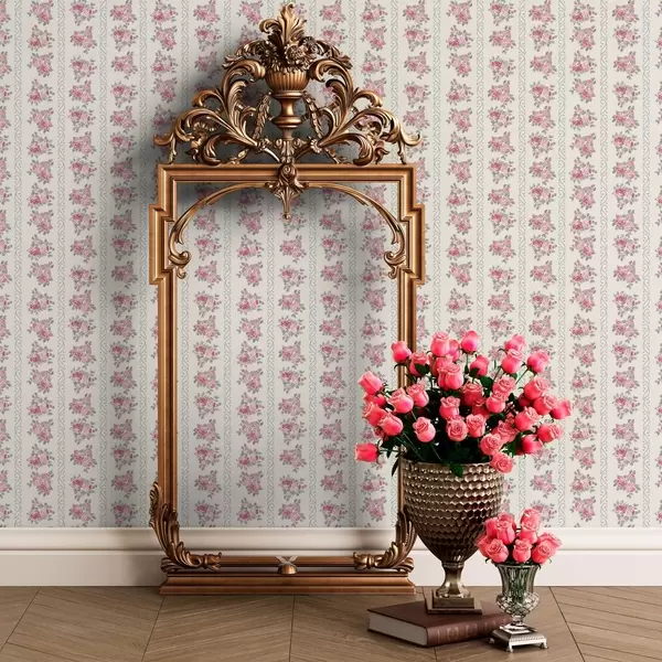 Tapetti Pystysuorat raidat ruusuja Nr. a00028