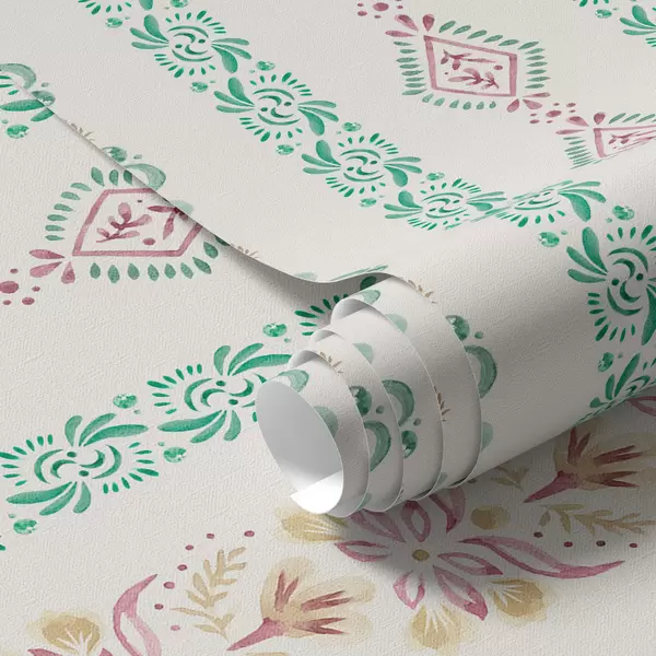 Tapetti Herkkä geometrinen koriste vesivärityyliin Nr. a00034
