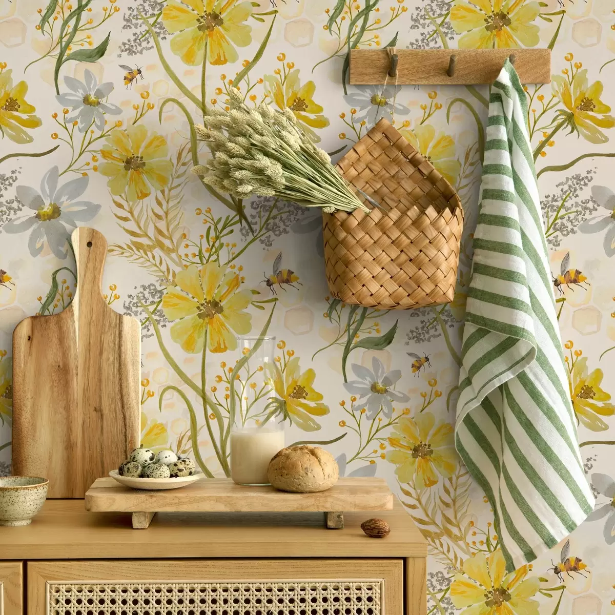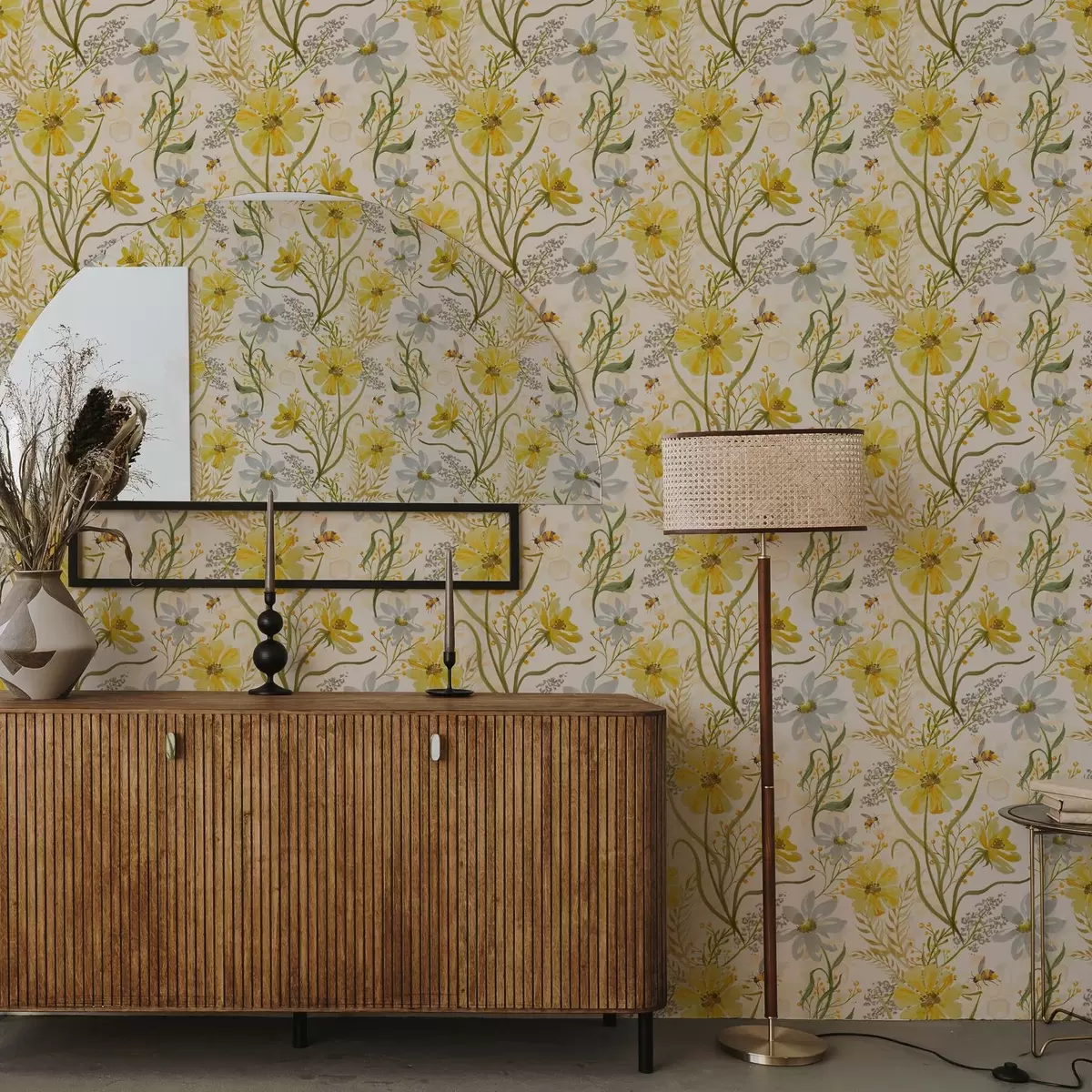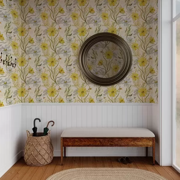 Tapetti Kirkas kukka koostumus keltainen väri Nr. a00045