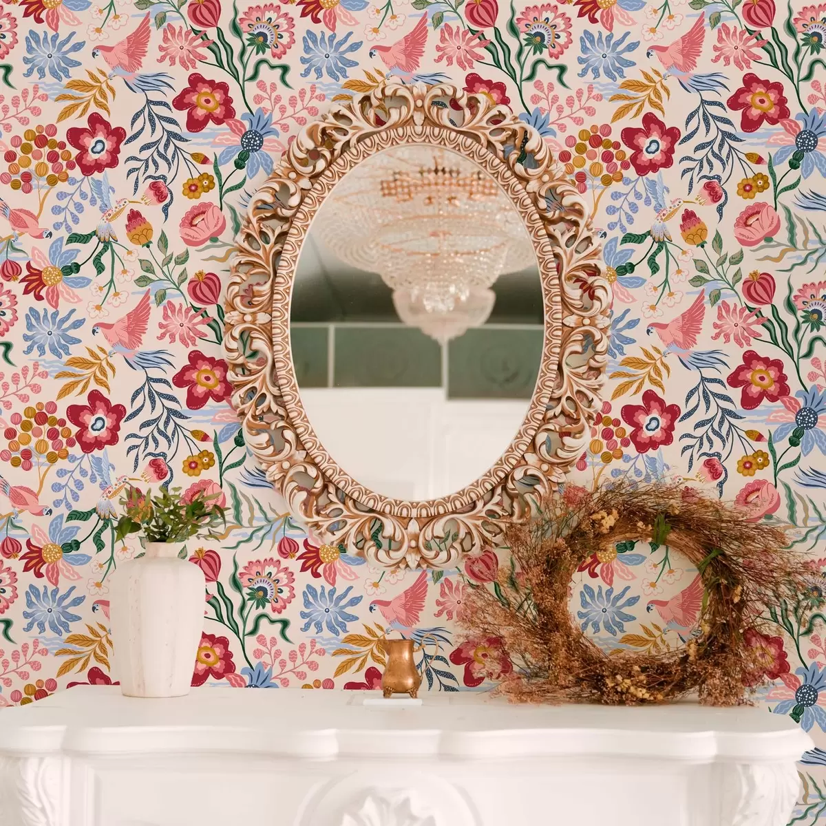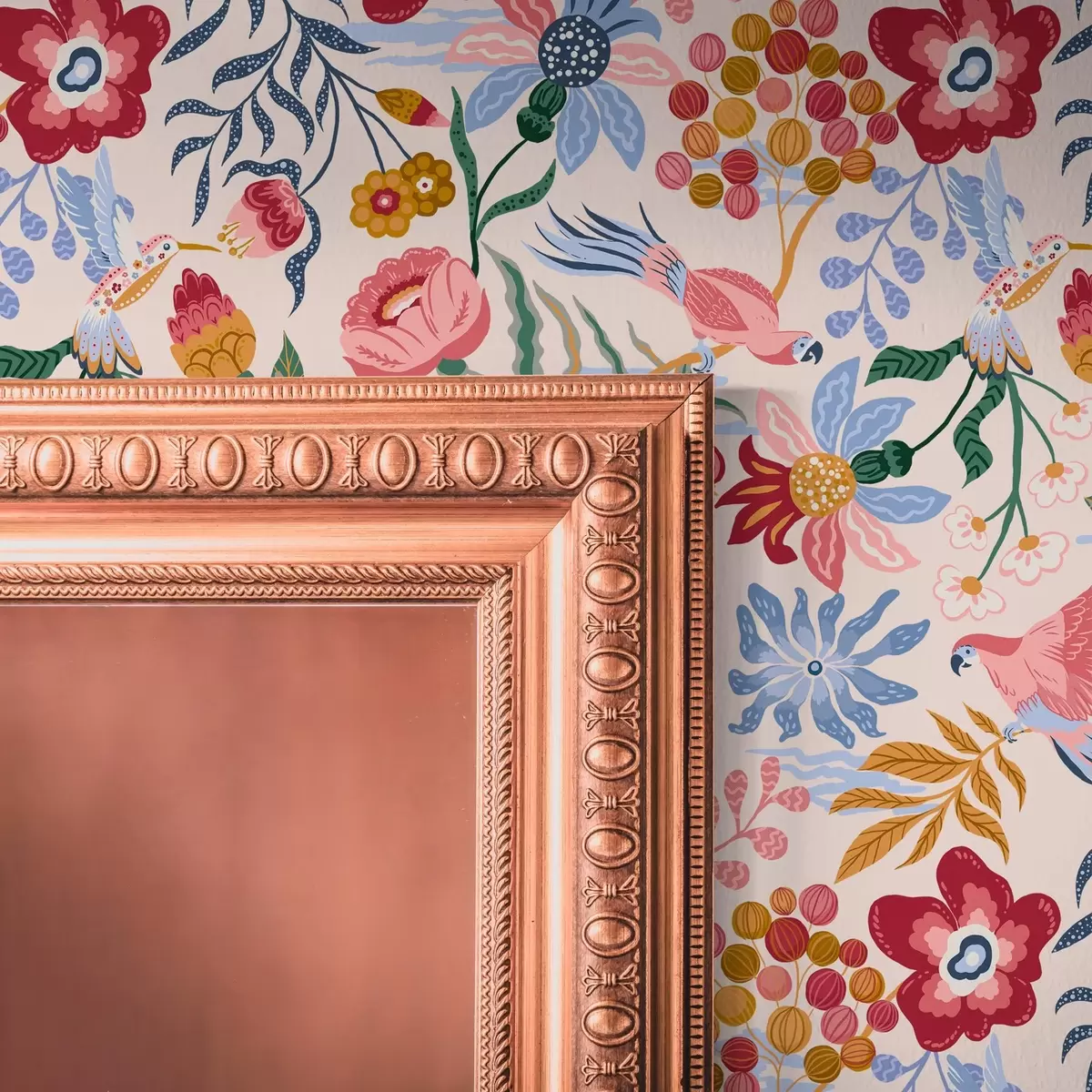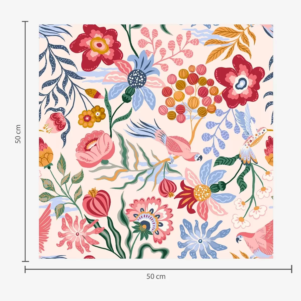 Tapetti Kirkas kukka ja marja koostumus papukaijojen kanssa Nr. a00046