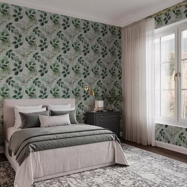 Tapetti Syksyn lehdet vesivärityyliin vihreillä sävyillä Nr. a00048v1