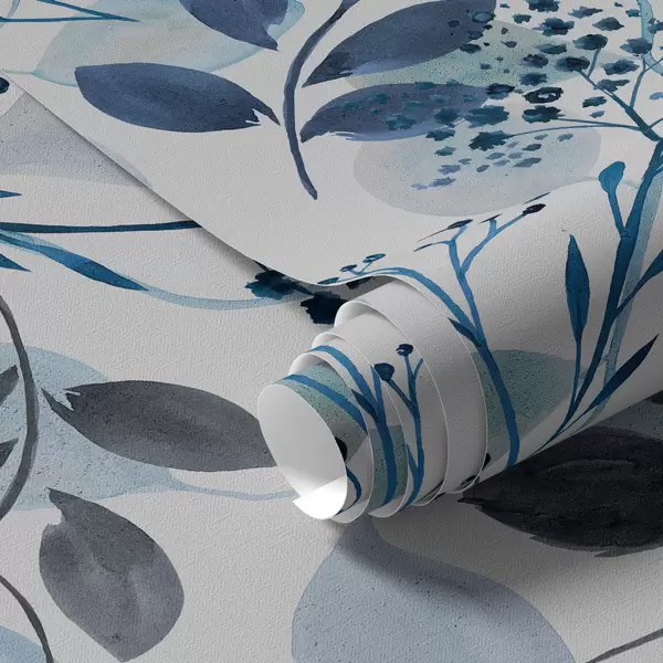 Tapetti Syksyn lehdet vesivärityyliin sinisin sävyin Nr. a00048v2