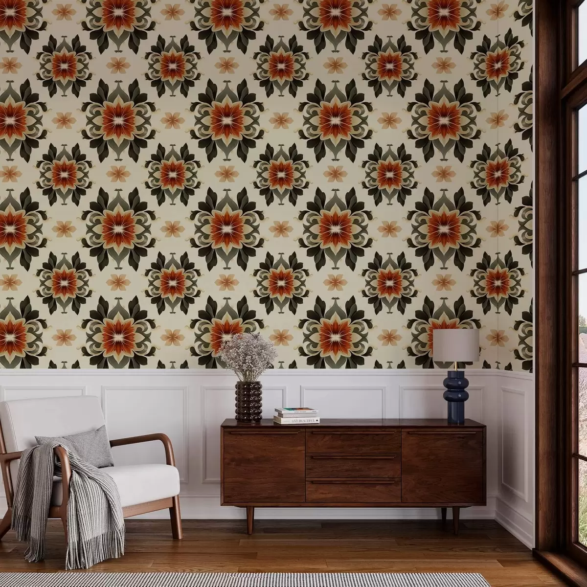 Tapetti Abstrakti kirkas kukka kuvio vaalealla taustalla Nr. a00069v3