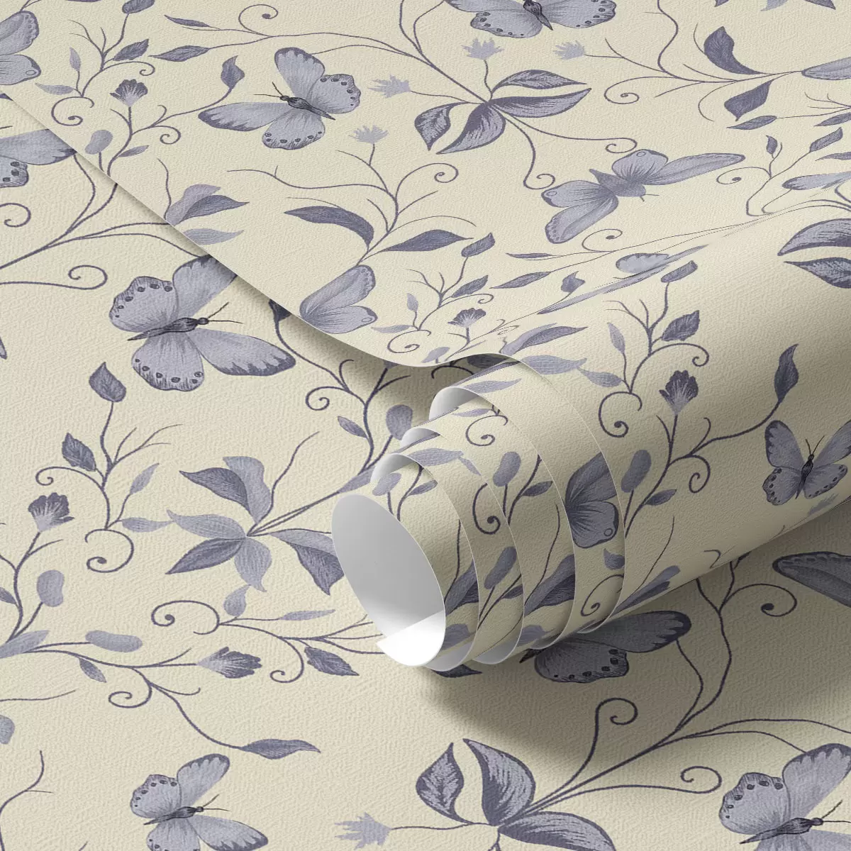 Tapetti Sinisiä perhosia ja lehtiä Nr. a00070