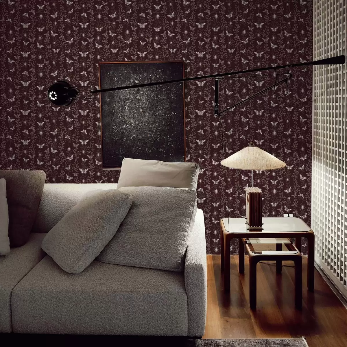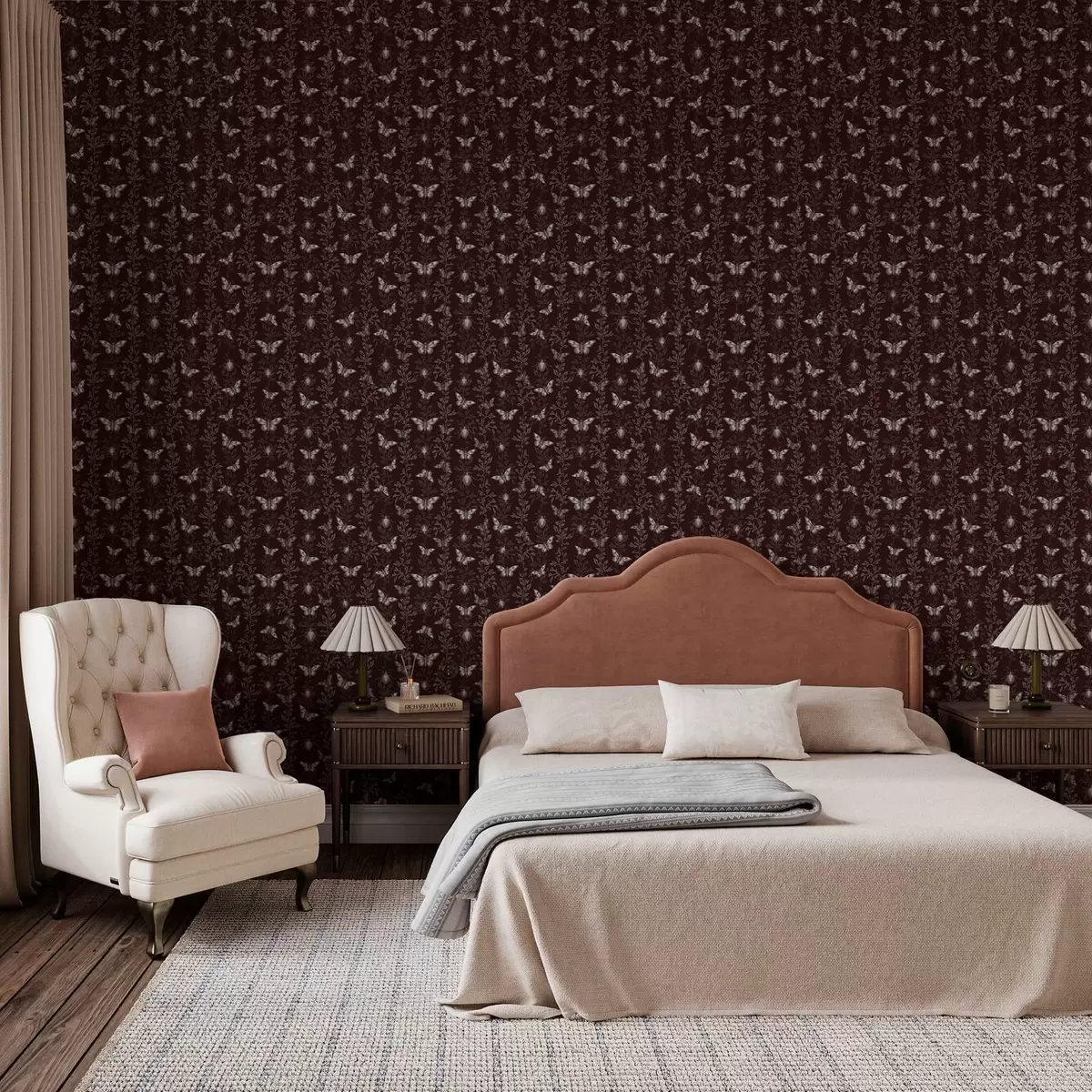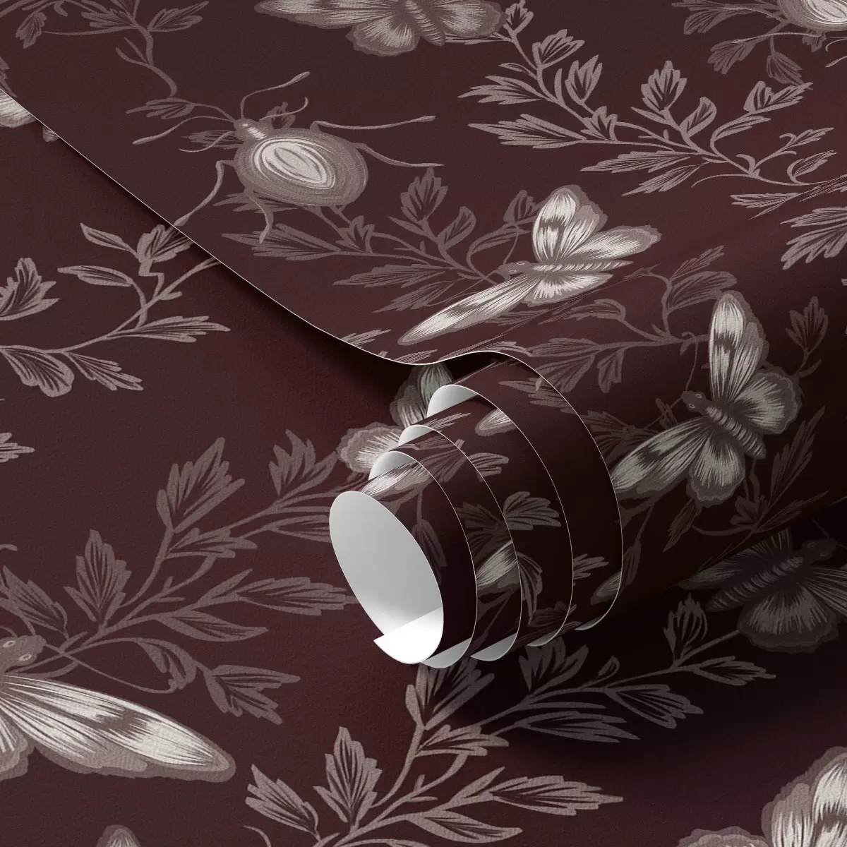 Tapetti Kokoonpano perhosia, lehtiä ja hyönteisiä tummalla taustalla Nr. a00073v1