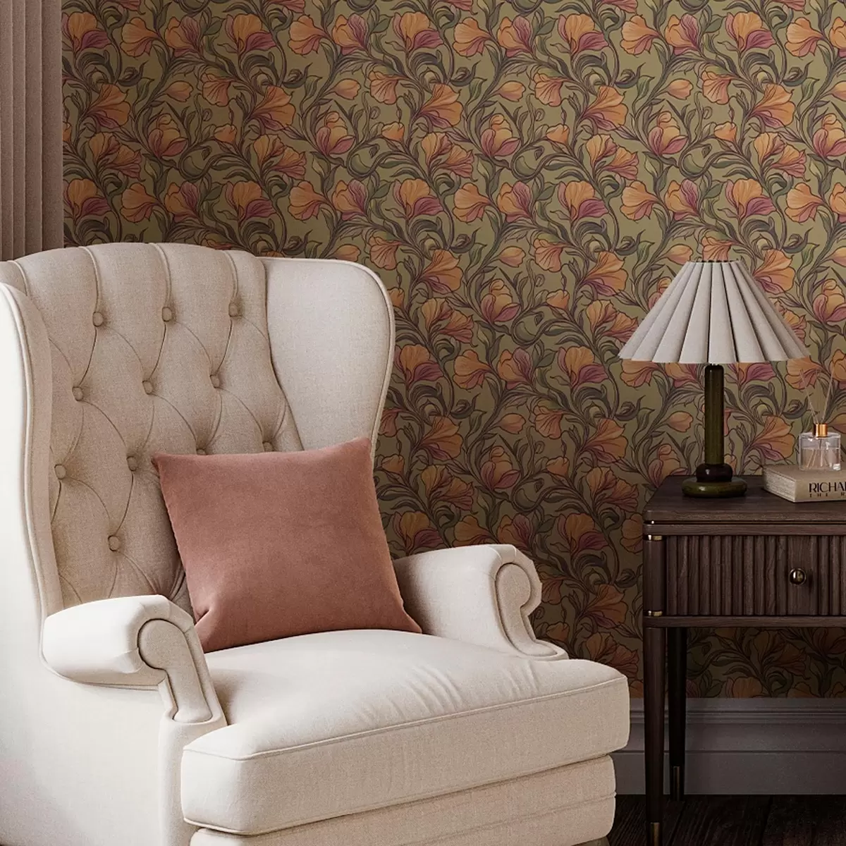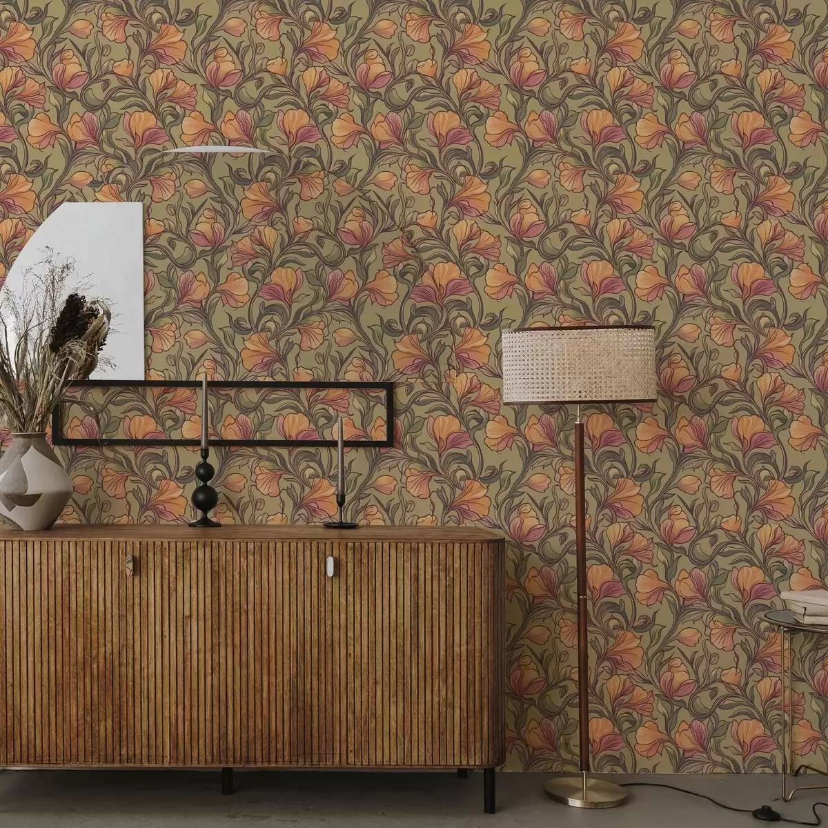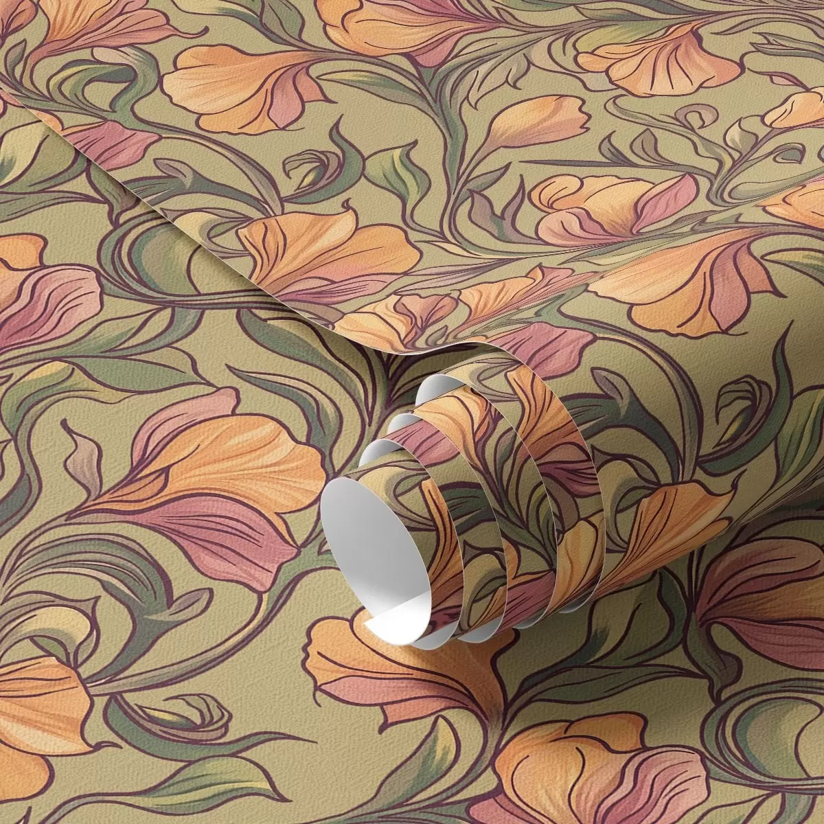 Tapetti Kirkas kierretty varret lehdet ja kukat Nr. a00074