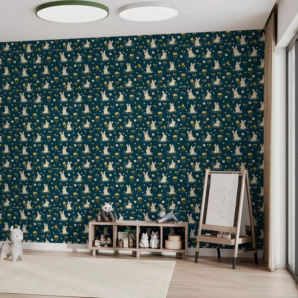 Tapetti Kaneja ruohossa ja kukkia tummalla taustalla Nr. a00080