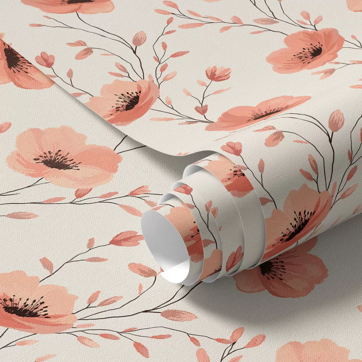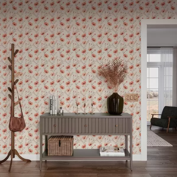 Tapetti Vaaleanpunaiset unikot varret Nr. a00083