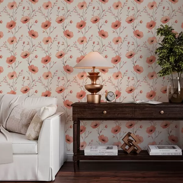 Tapetti Vaaleanpunaiset unikot varret Nr. a00083
