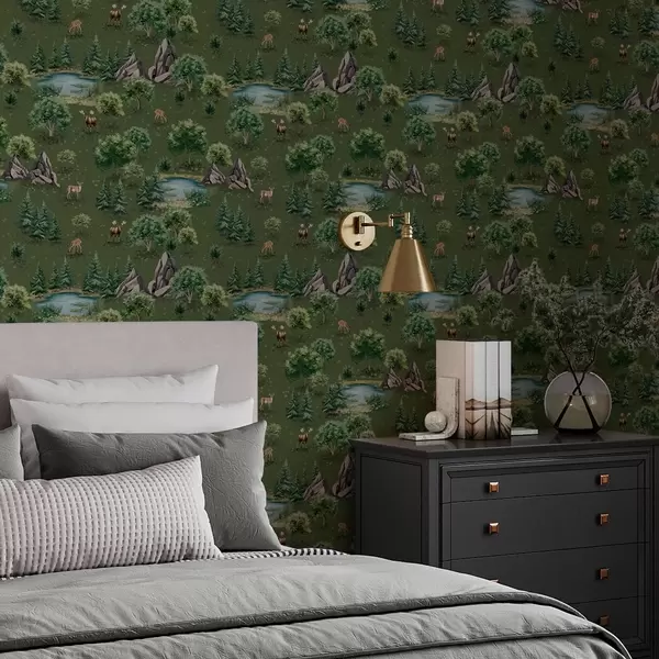Tapetti Peura järven rannalla puiden ja kivien kanssa Nr. a00086