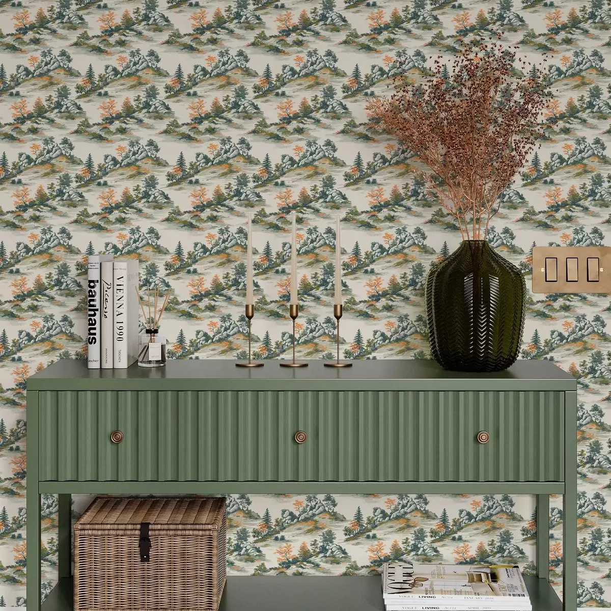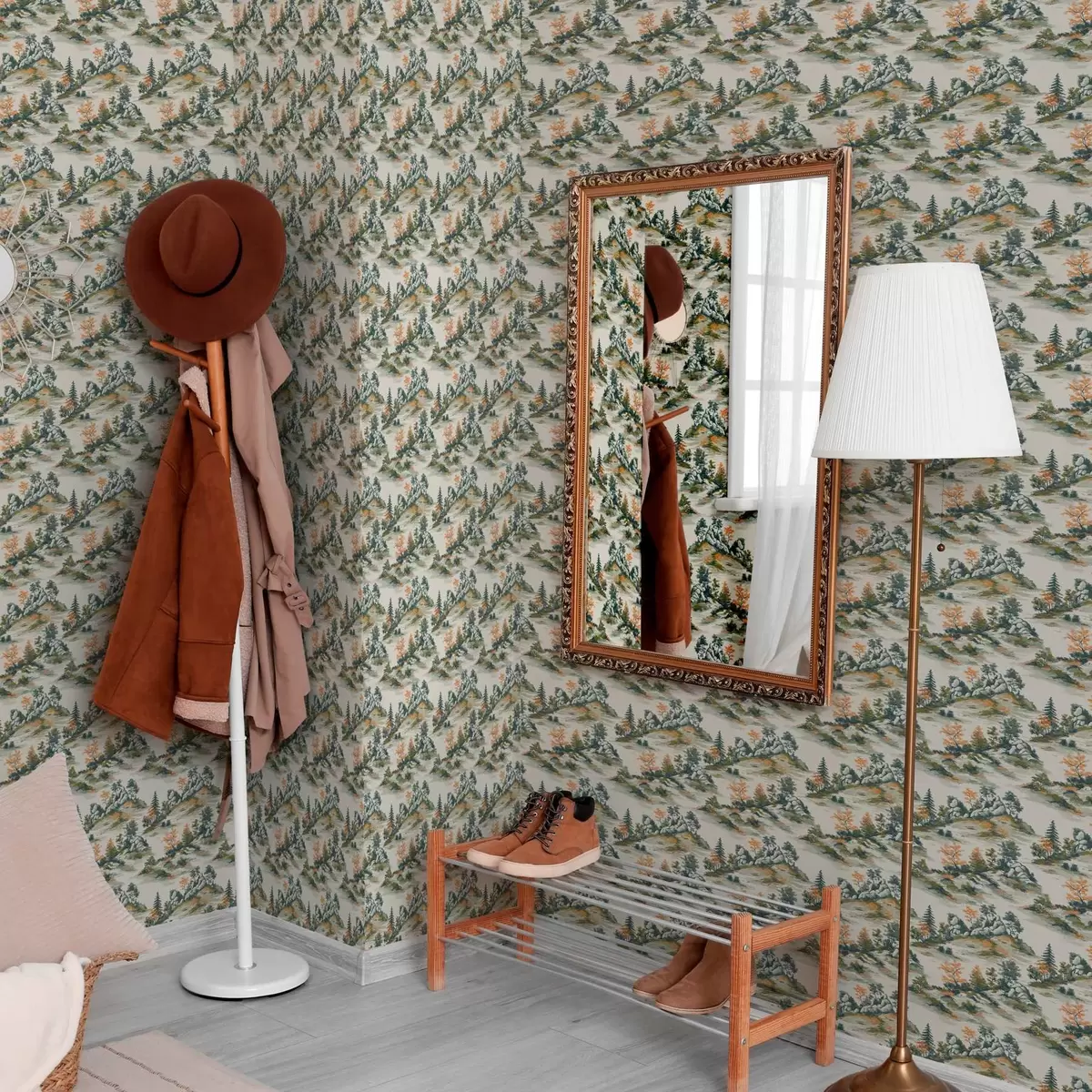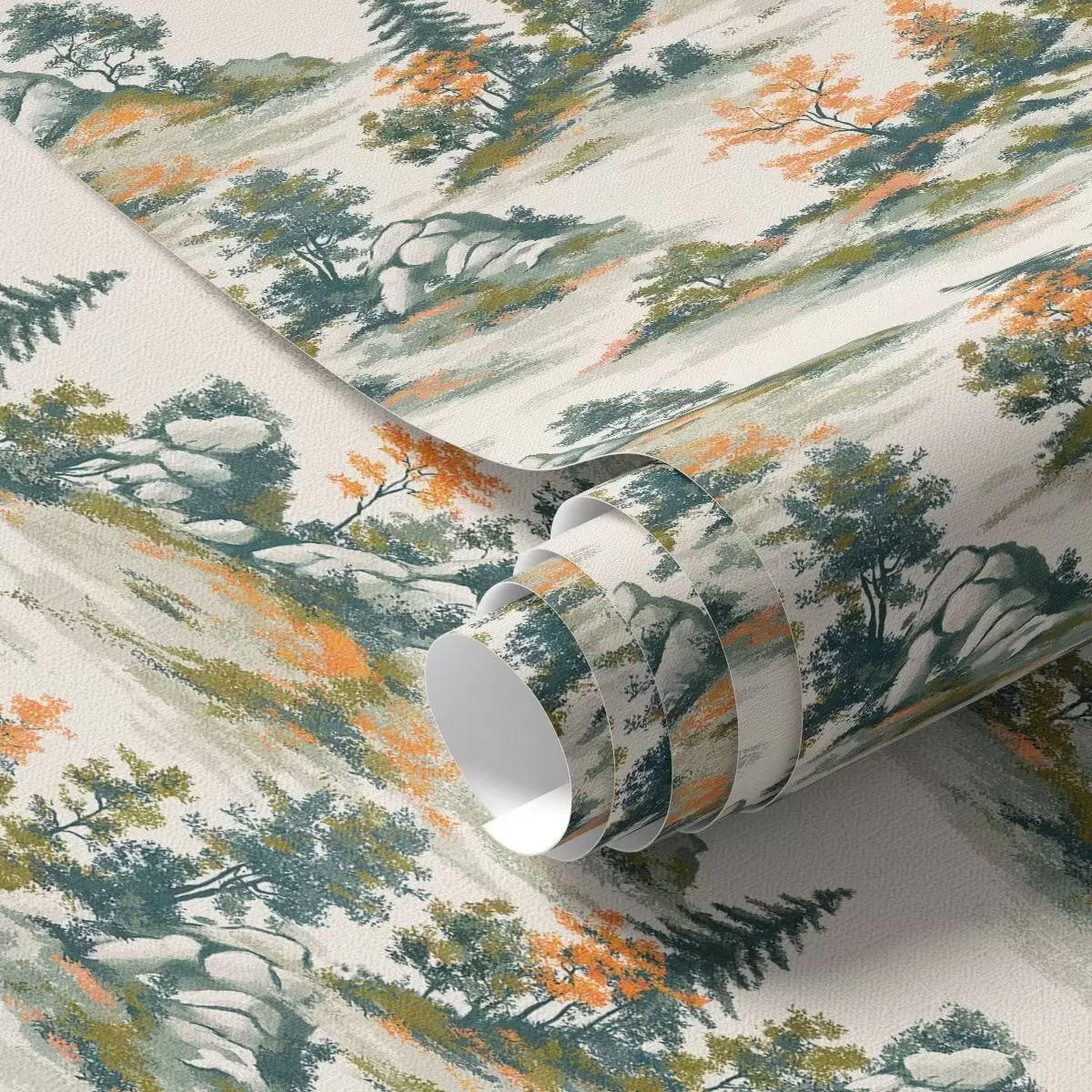 Tapetti Puut vuoristoisilla kallionjyrkänteillä, joilla on kiviä, - Nr. a00090