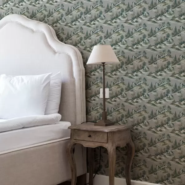 Tapetti Puut vuoristoisilla reunoilla, joilla on kiviä harmaalla taustalla Nr. a00090v1