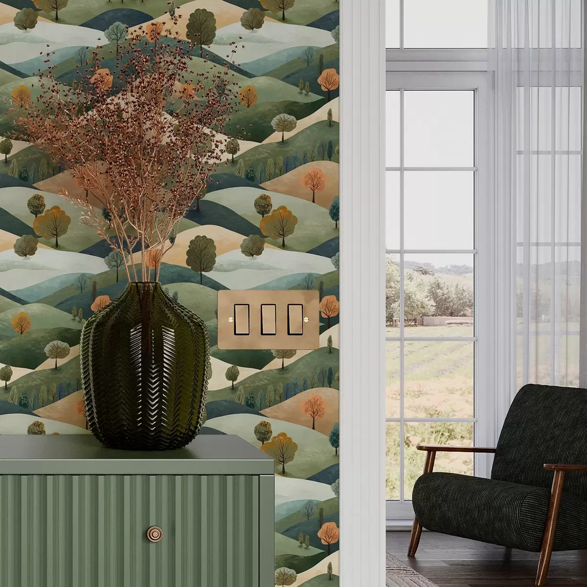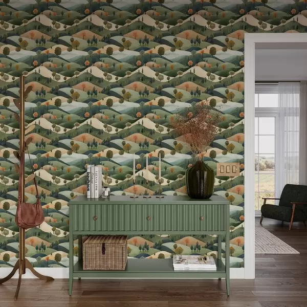 Tapetti Hauskoja kukkuloita, joilla on puita Nr. a00091