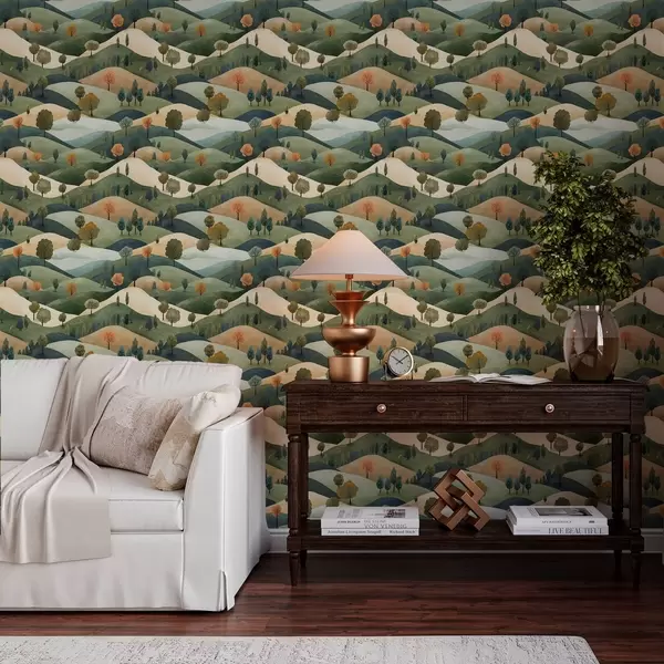 Tapetti Hauskoja kukkuloita, joilla on puita Nr. a00091