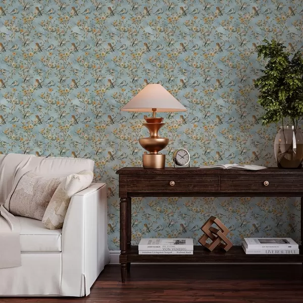 Tapetti Pieniä lintuja oksilla sinisellä taustalla Nr. a00092
