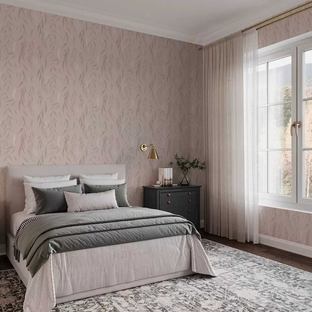Tapetti Roikkuvat oksat ja lehdet beigeillä taustalla Nr. a00095v1