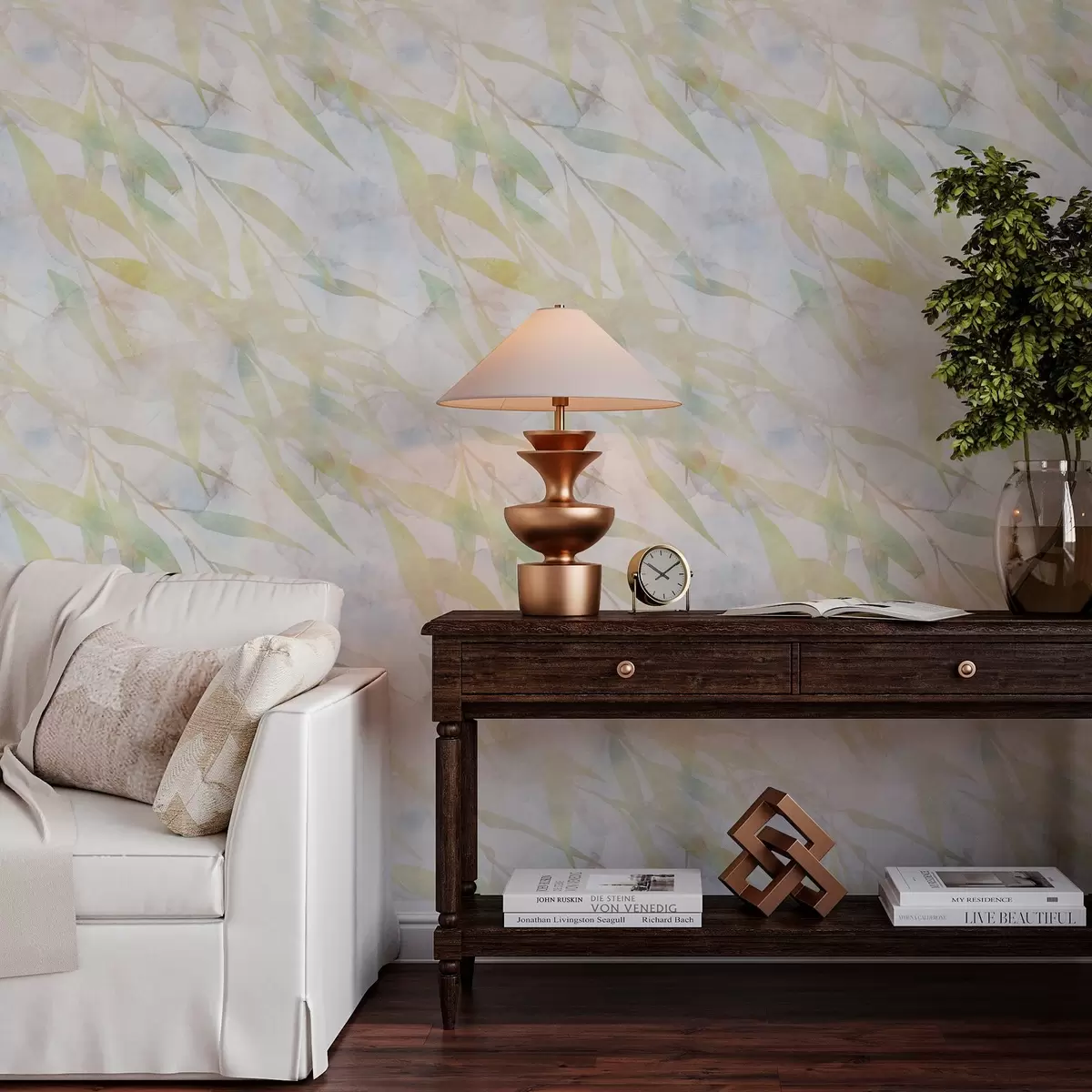 Tapetti Kelta-vihreät oksat, joiden lehdet tuulee Nr. a00097