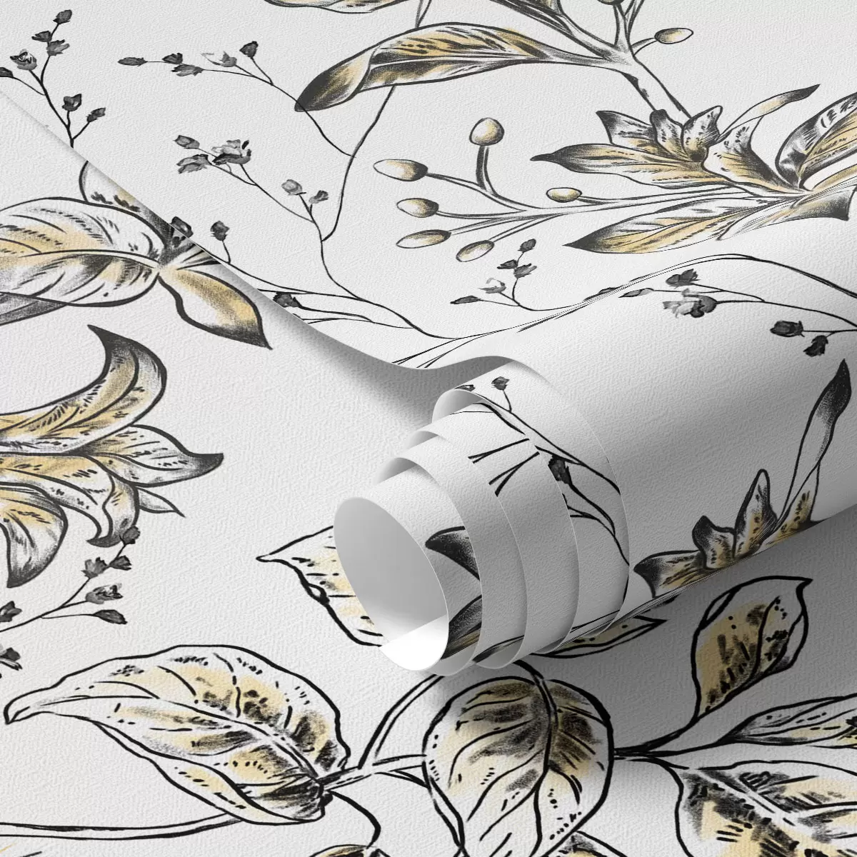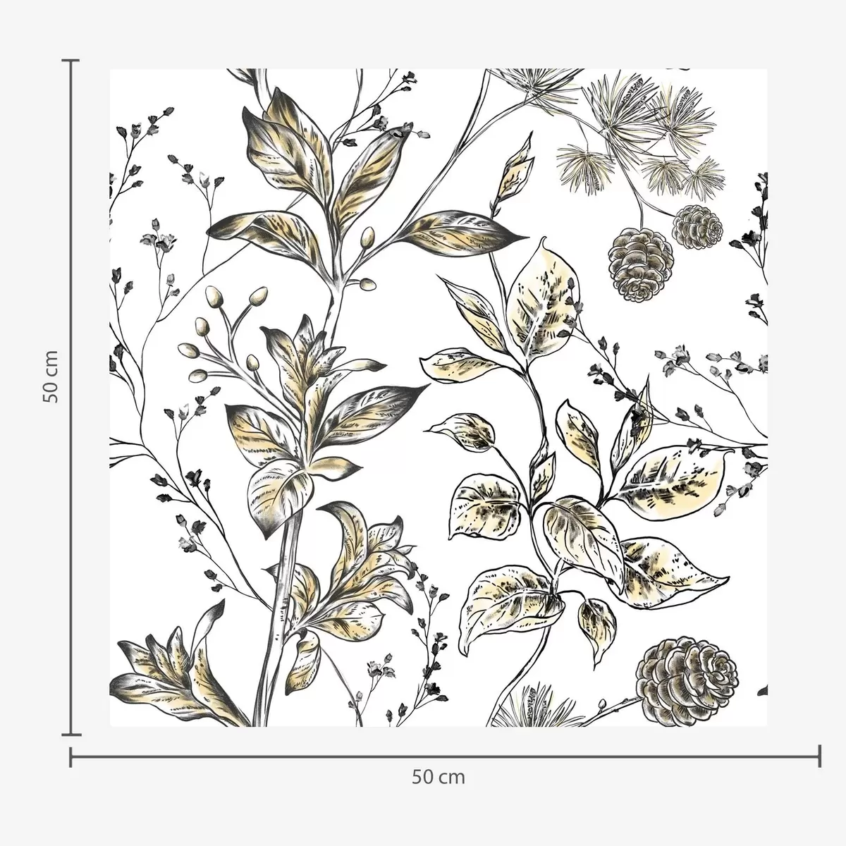 Tapetti Oksat keltaisilla lehdillä valkoisella taustalla Nr. a00098