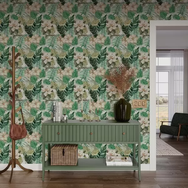 Tapetti Trooppisten kukkien ja lehtien koostumus Nr. a00099