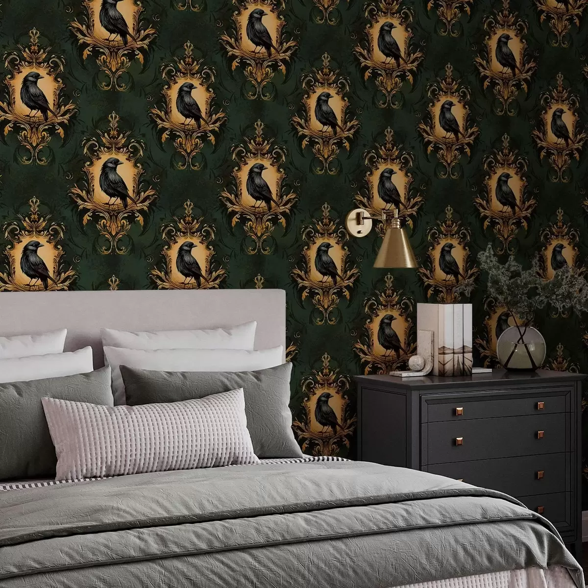 Tapetti Varis kehyksessä vihreällä taustalla Nr. a00105