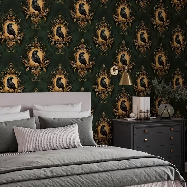 Tapetti Varis kehyksessä vihreällä taustalla Nr. a00105
