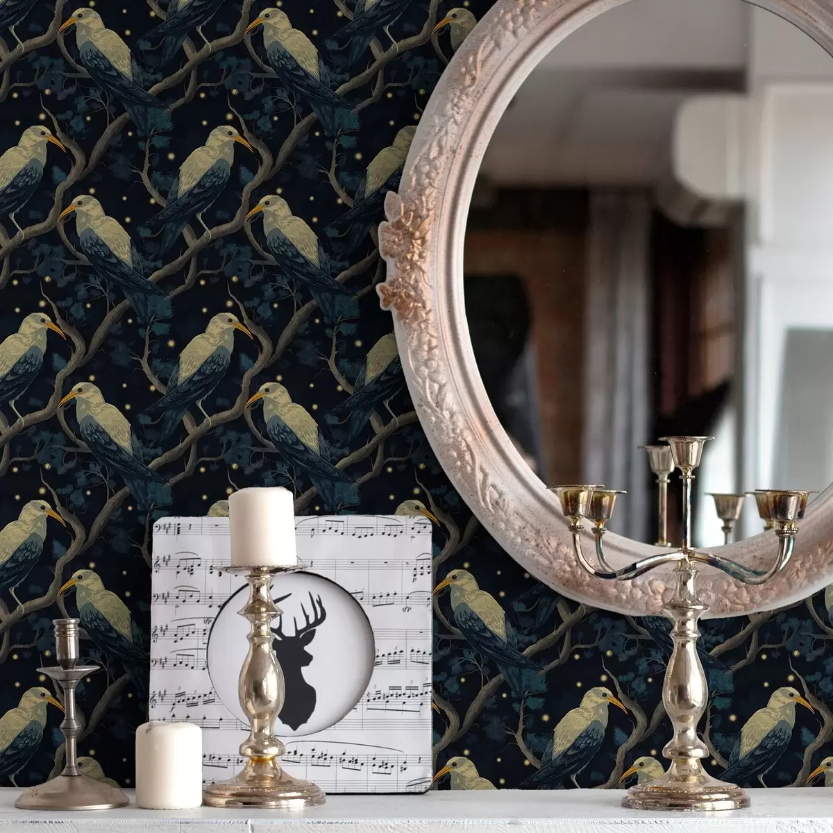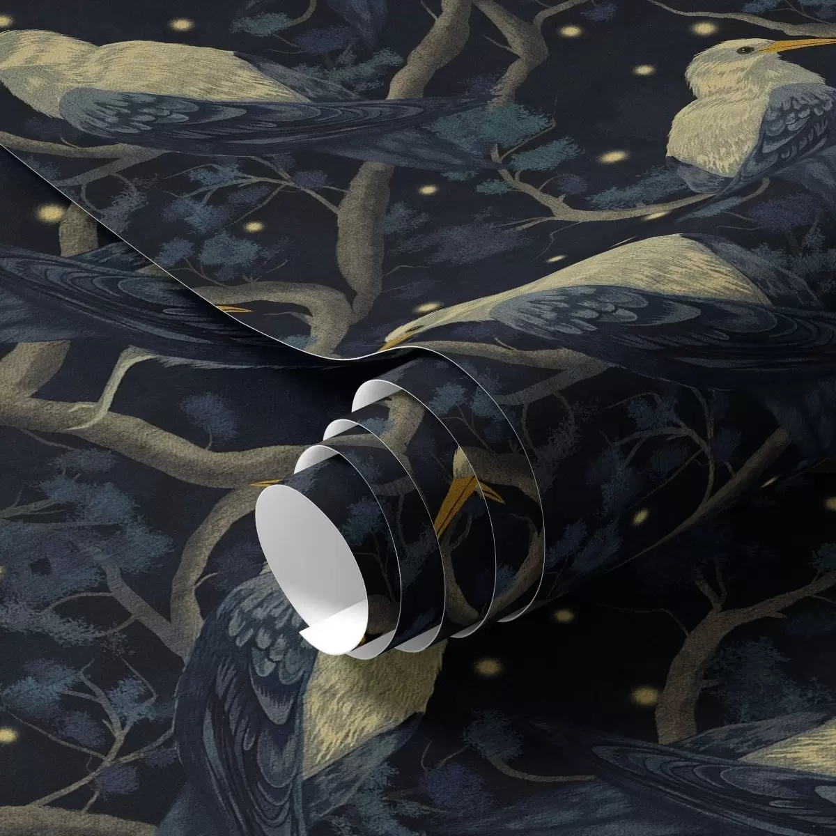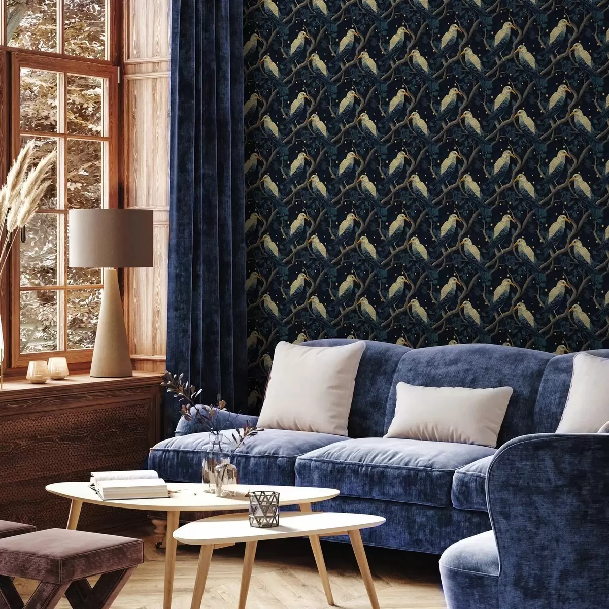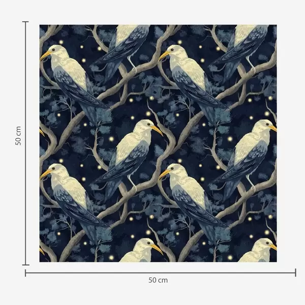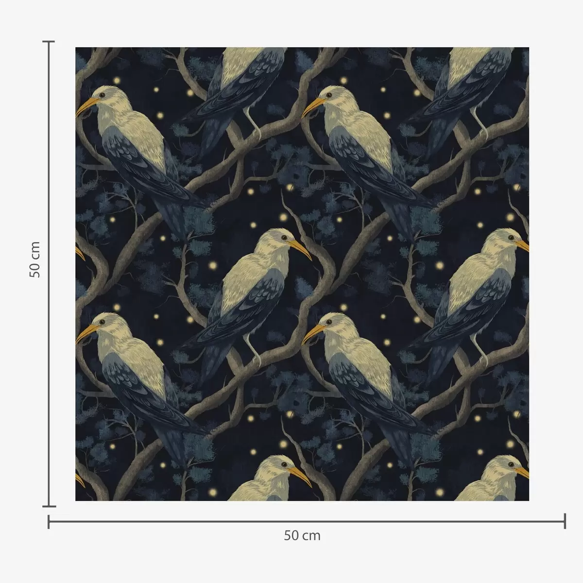 Tapetti Yölinnut oksilla ja tähdet tummansinisellä taustalla Nr. a00109v1