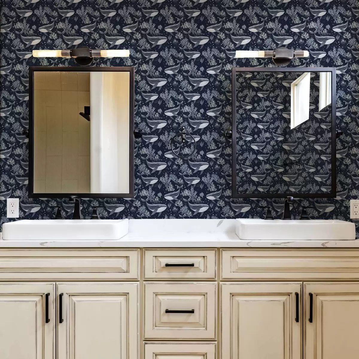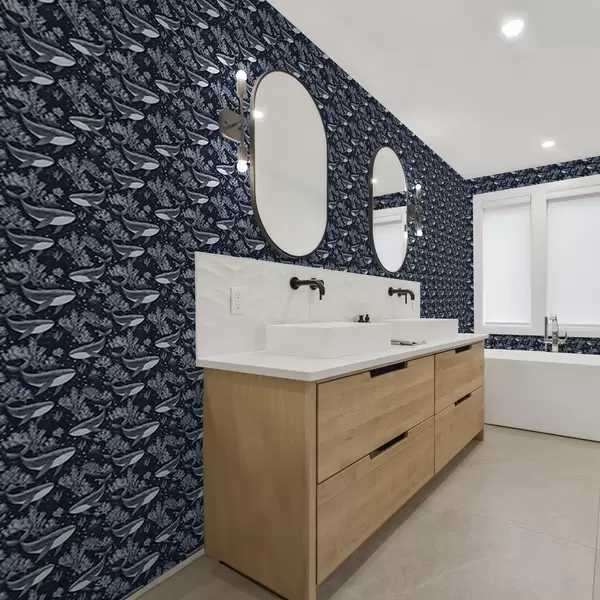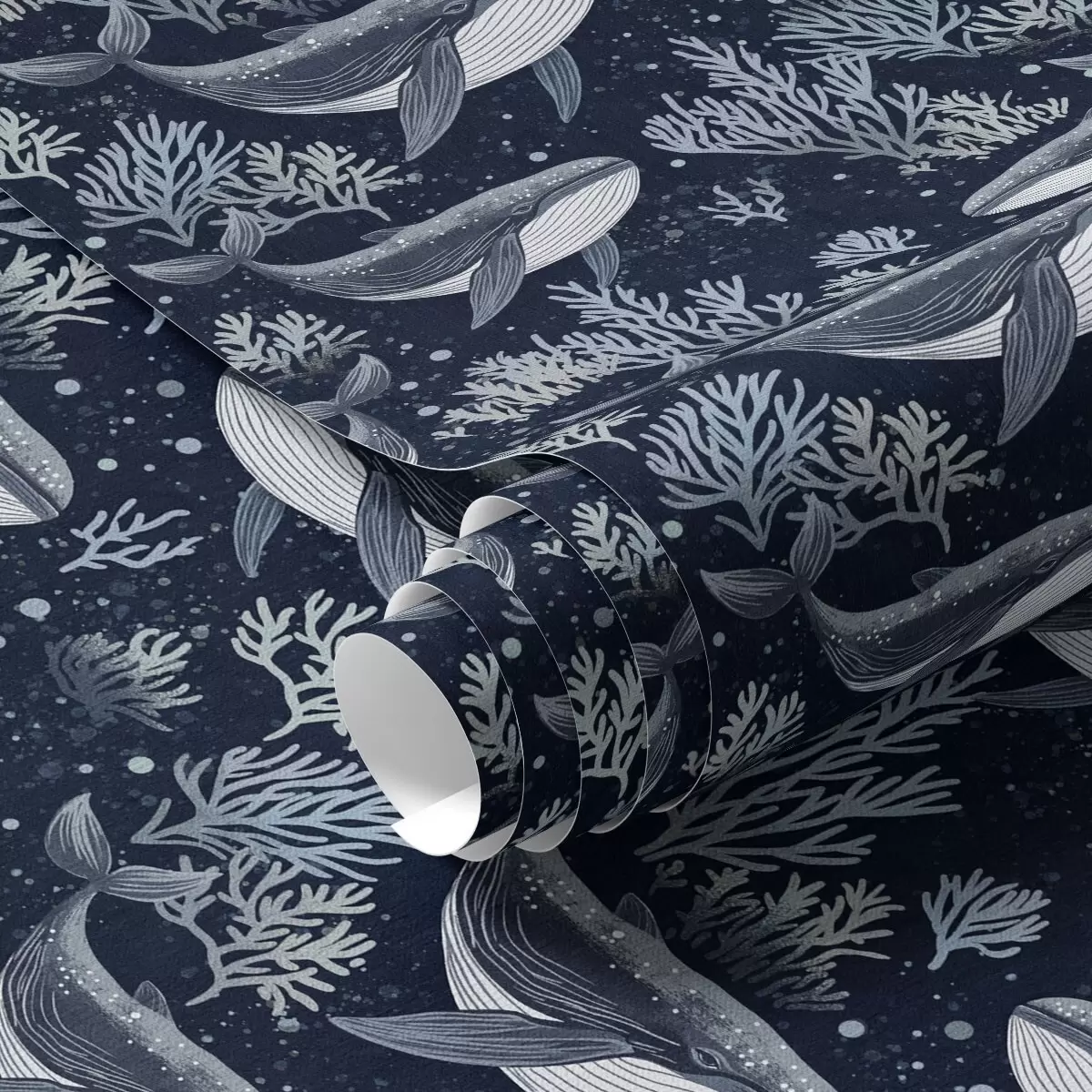 Tapetti Valaita ja koralleja tummansinisellä taustalla Nr. a00116v1