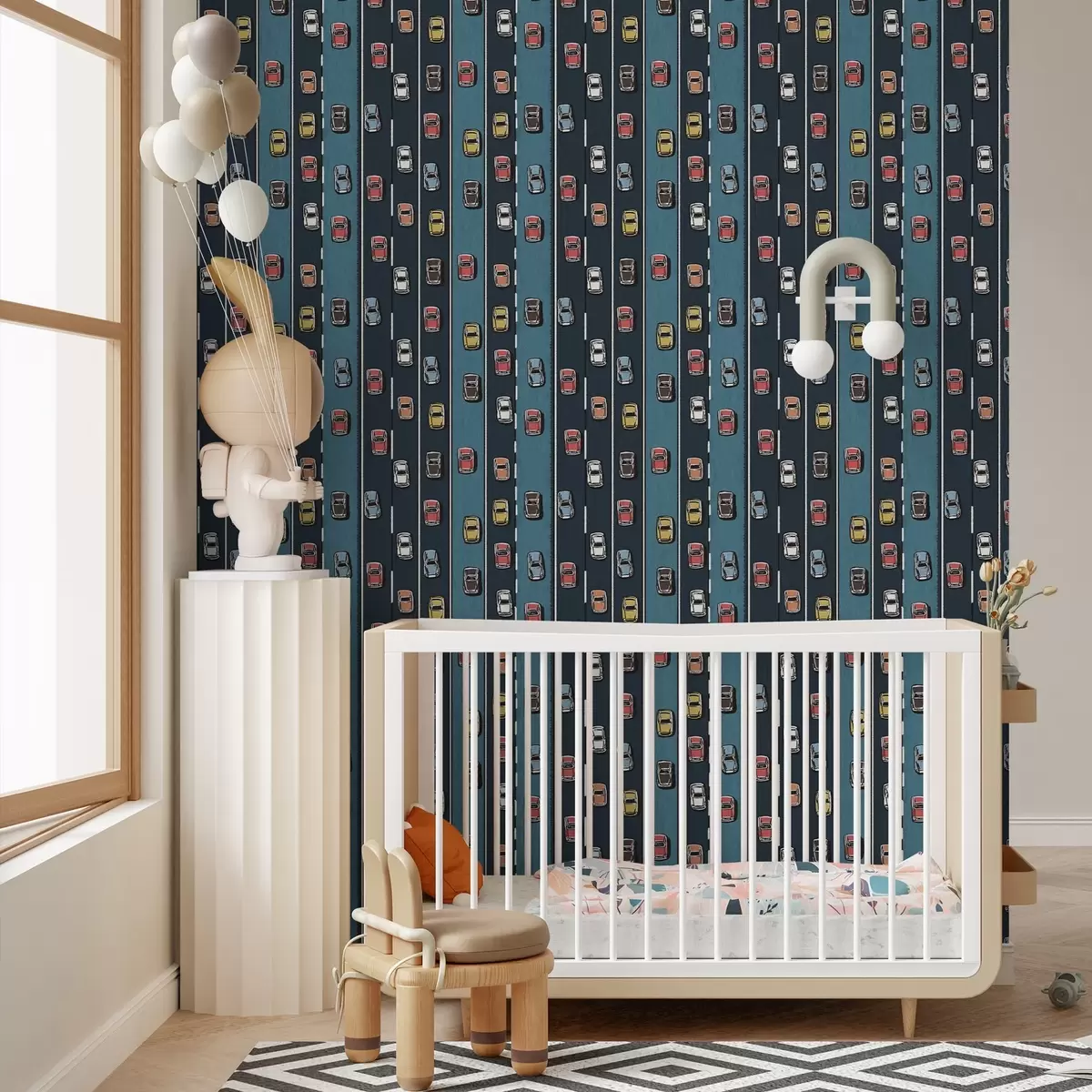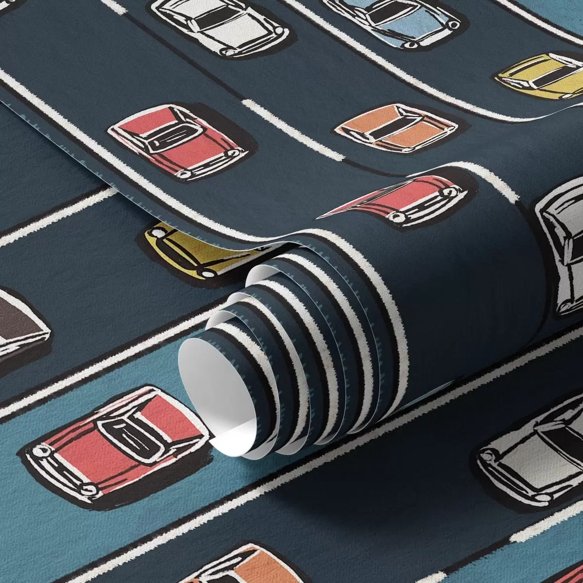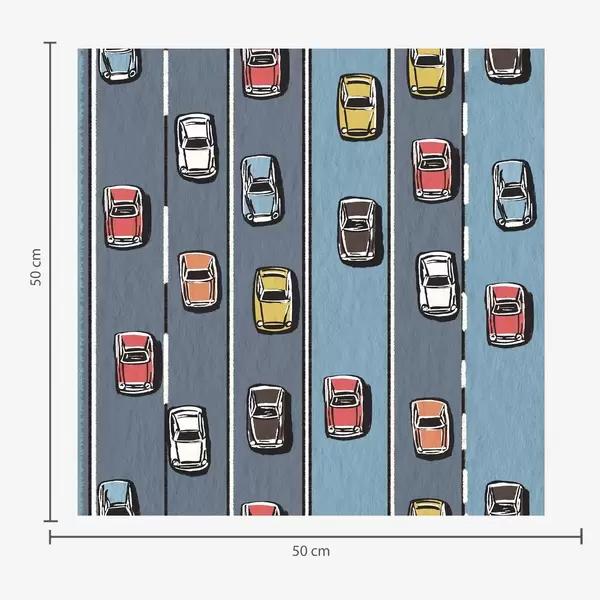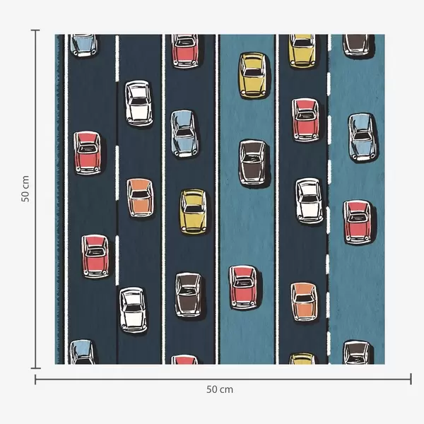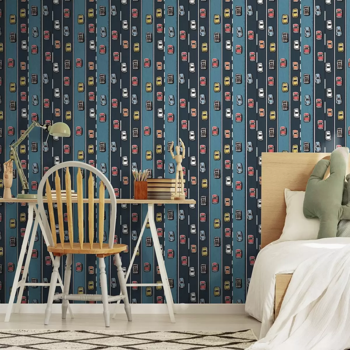 Tapetti Retro auto laivastonsinisellä tiellä 60-luvun tyyliin Nr. a00118