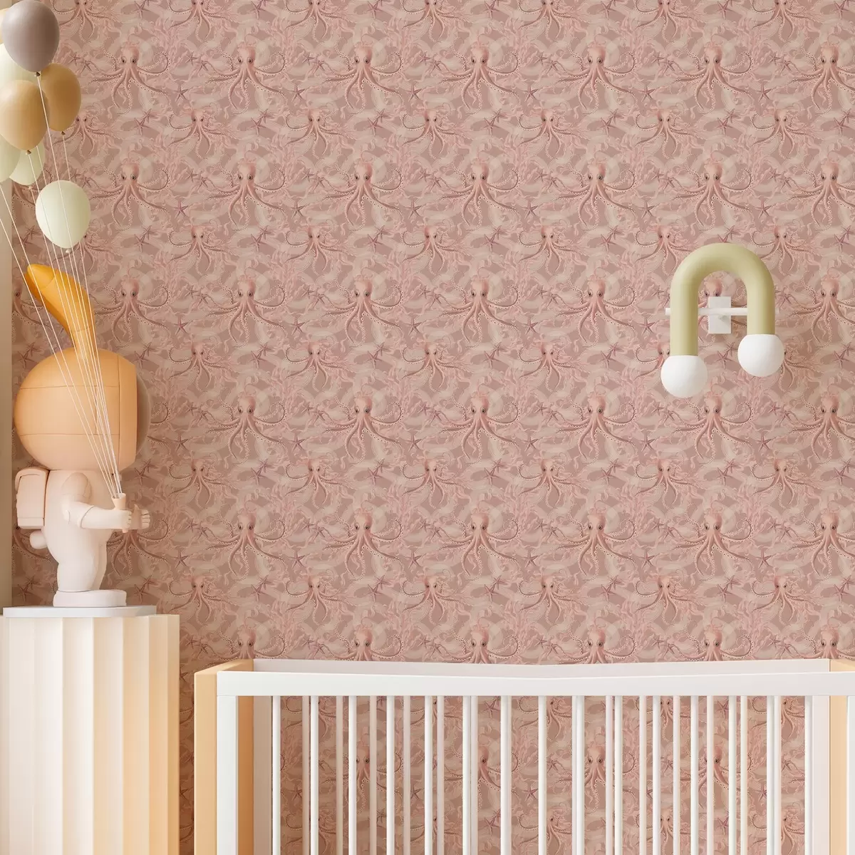 Tapetti Mustekalat vaaleanpunaisella taustalla Nr. a00120