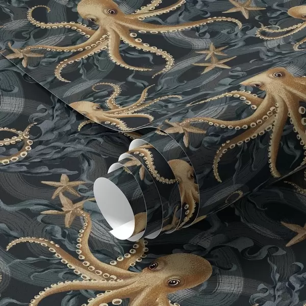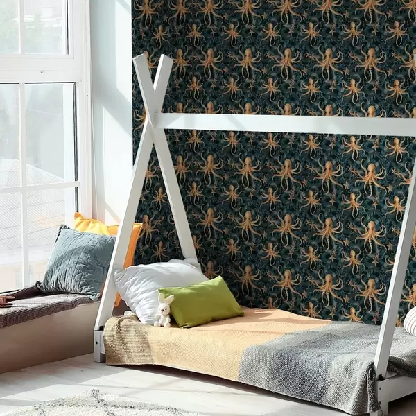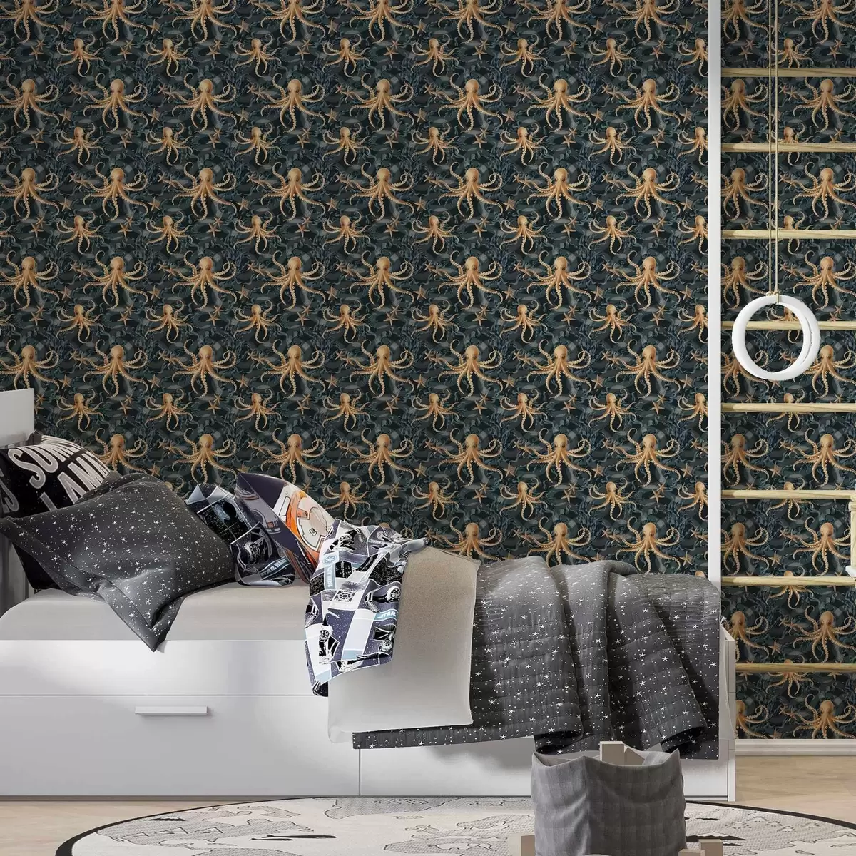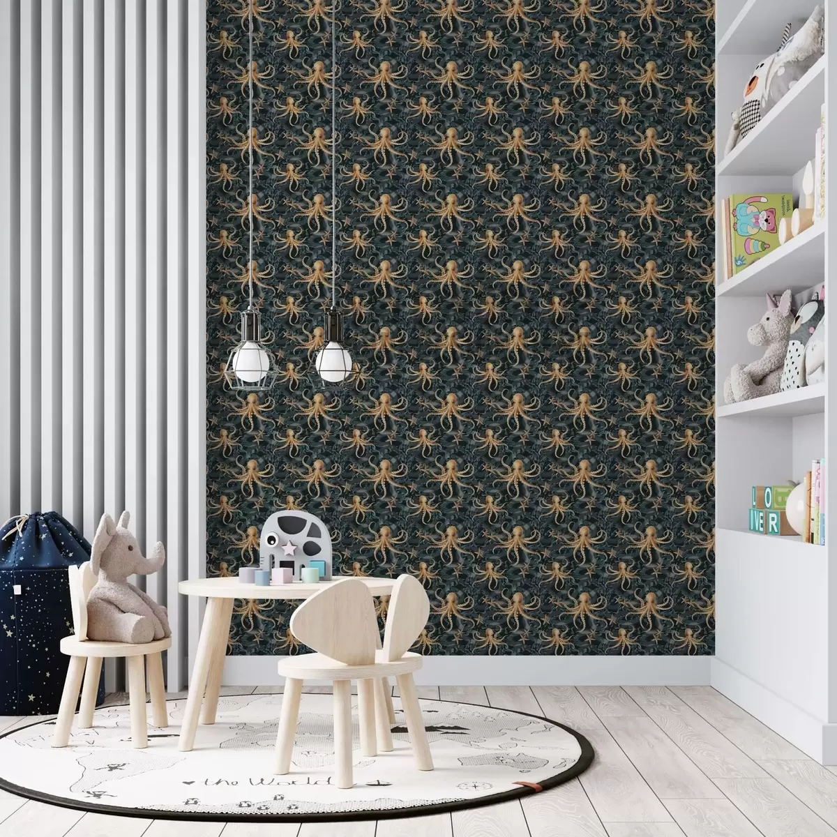 Tapetti Mustekalat tummansinisellä taustalla Nr. a00120v1