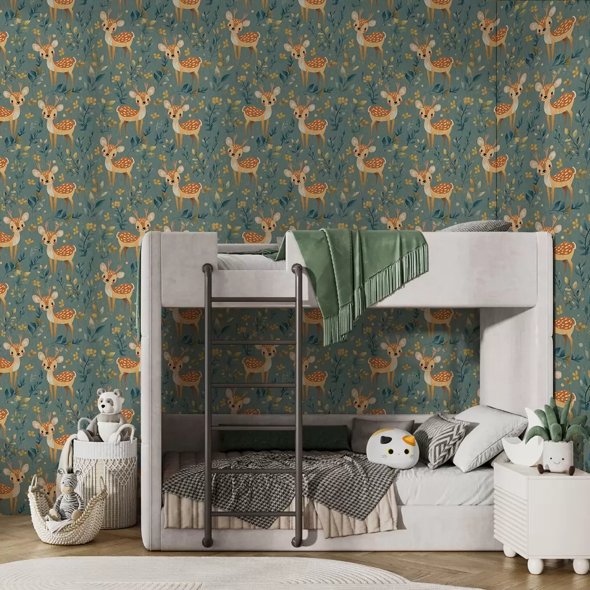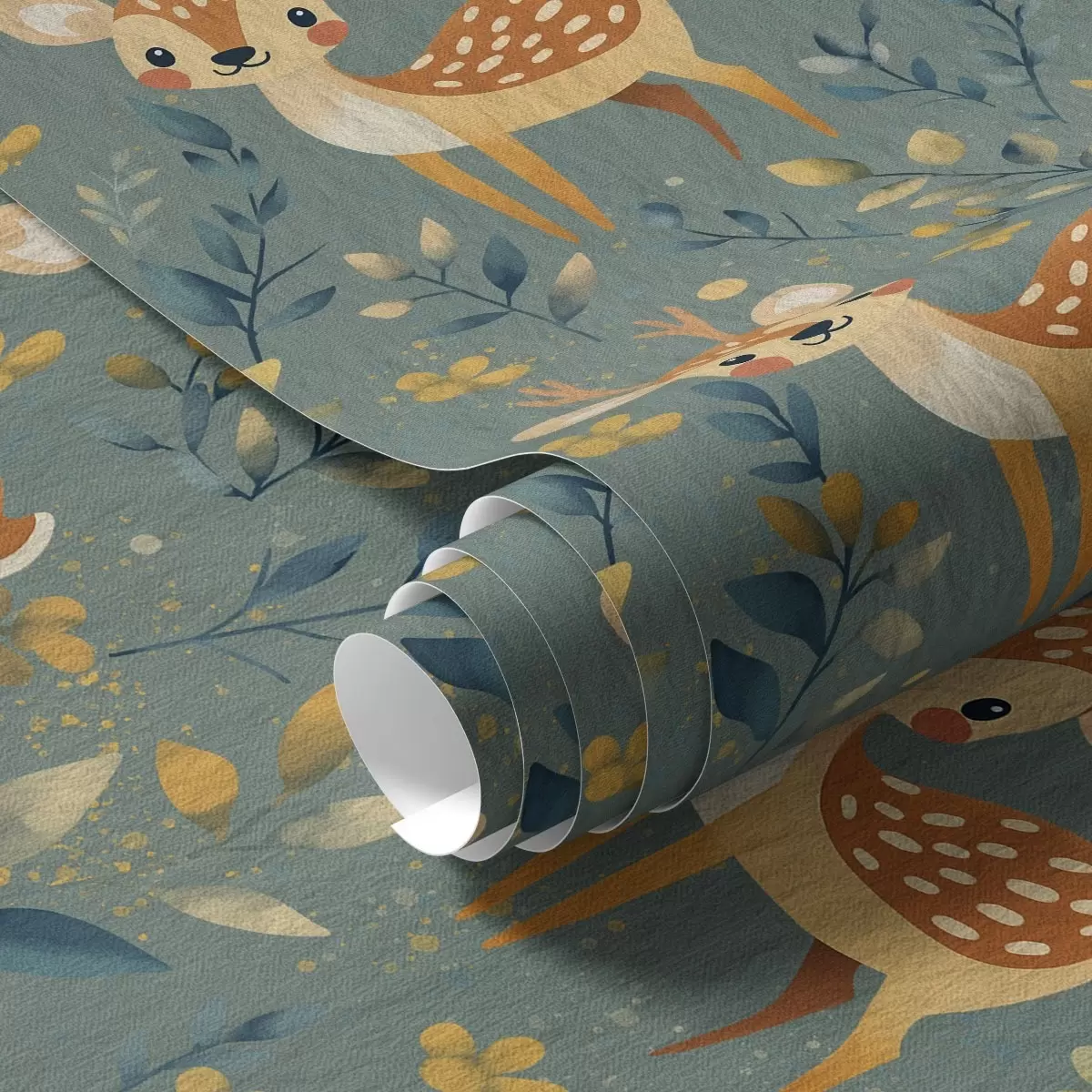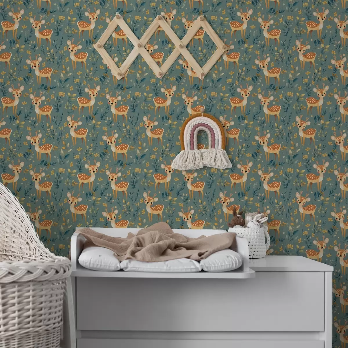 Tapetti Vauva peura metsässä keltaisten lehtien kanssa Nr. a00124v1