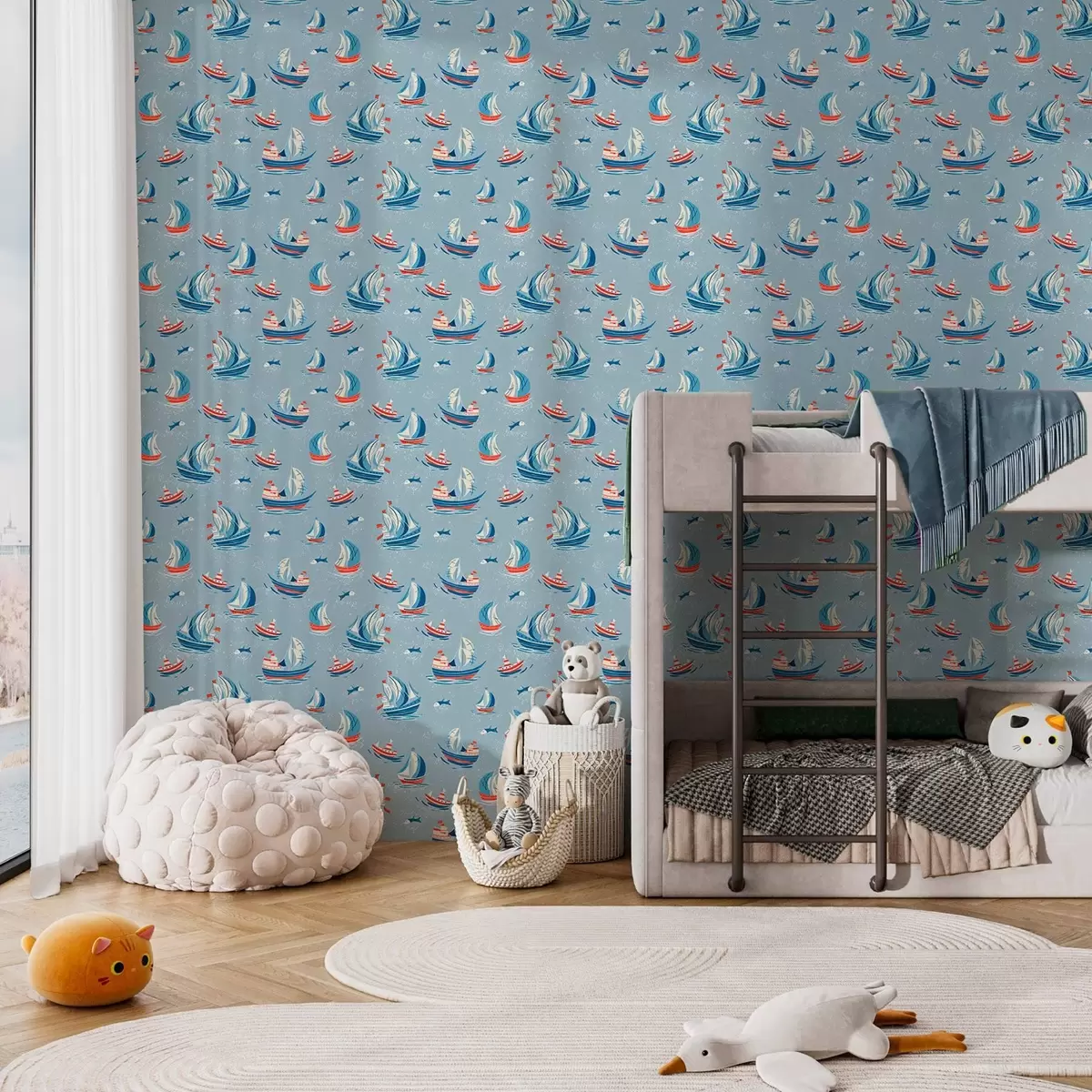 Tapetti Laivat sinisellä pohjalla Nr. a00126