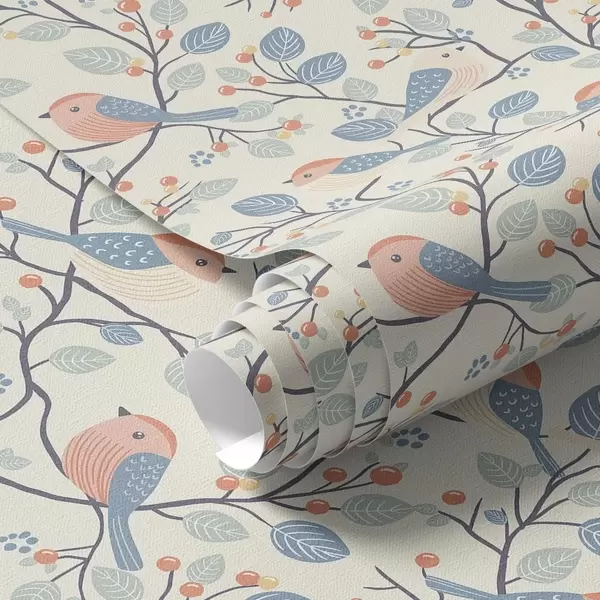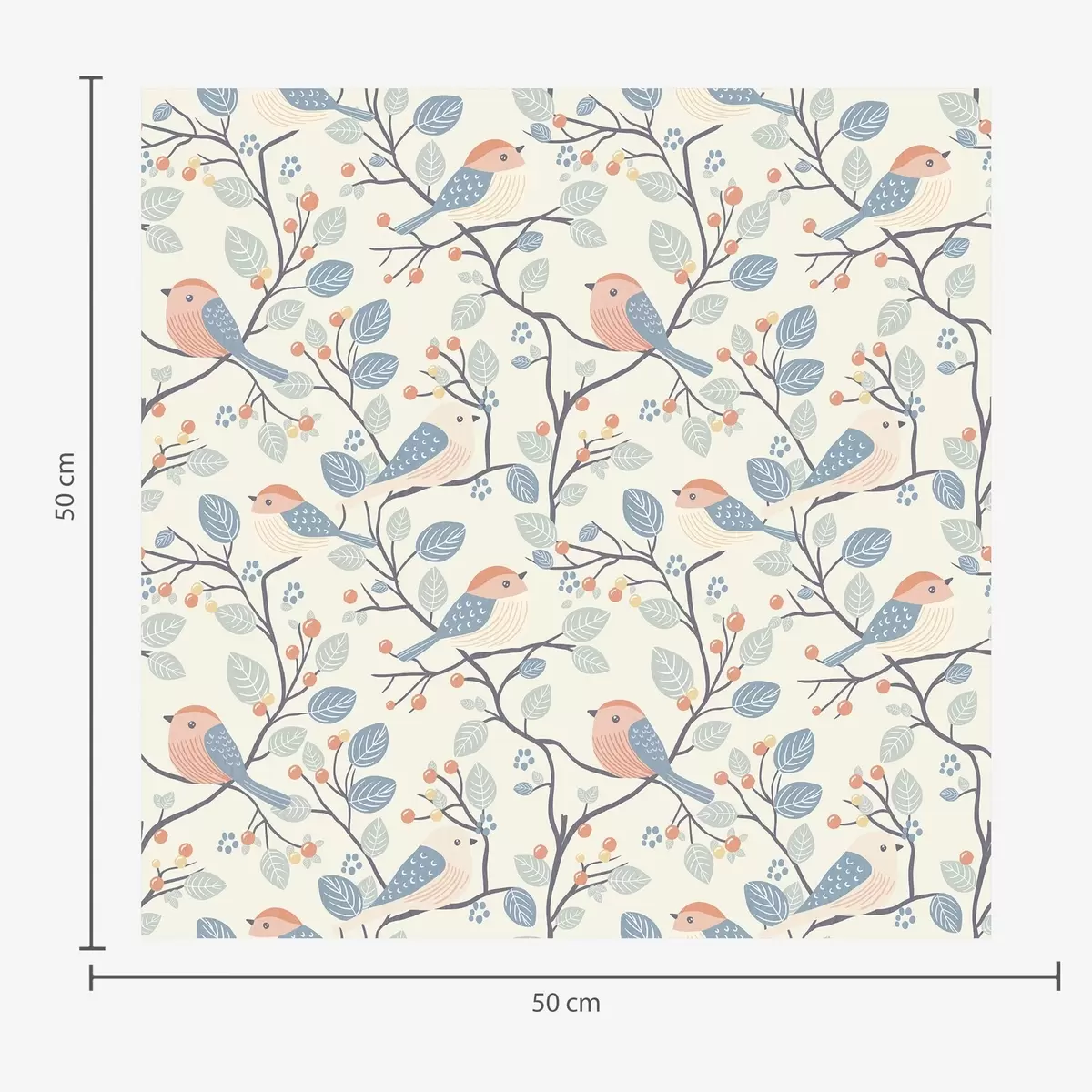 Tapetti Pastellilintuja ja oksia vaalealla taustalla Nr. a00128