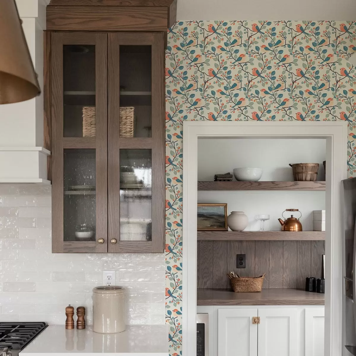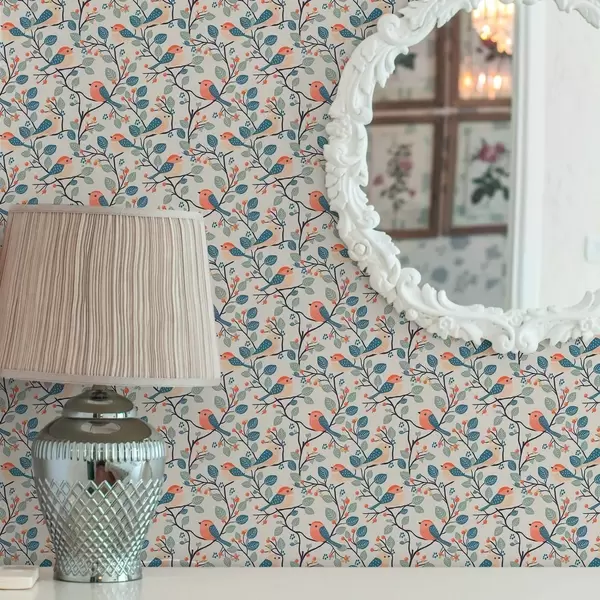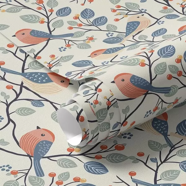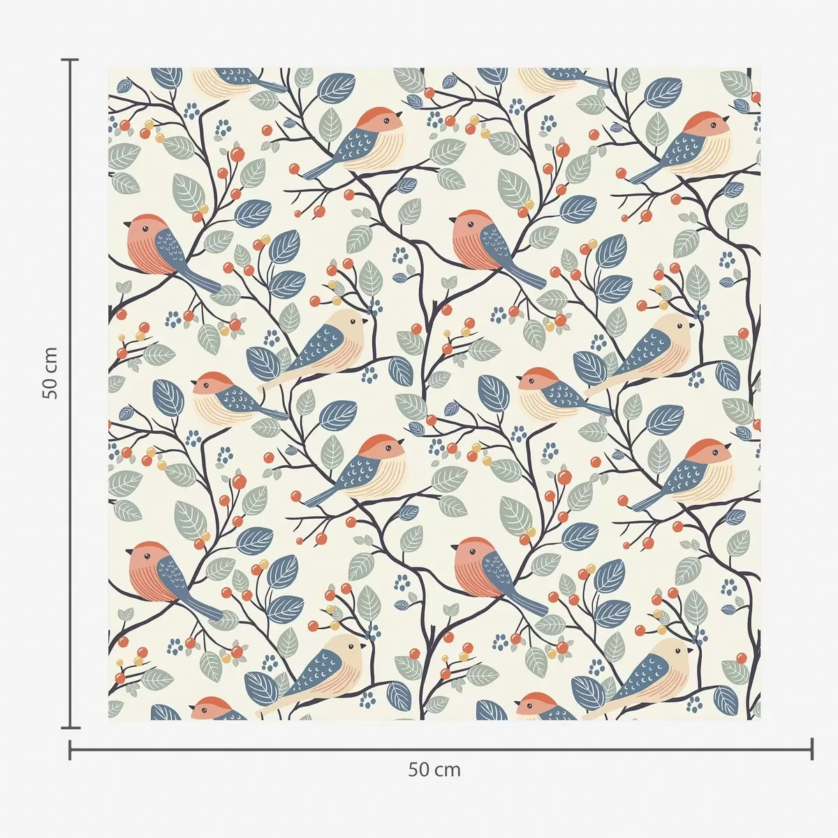 Tapetti Lintuja oksilla ja marjoja lämpimissä väreissä Nr. a00128v1