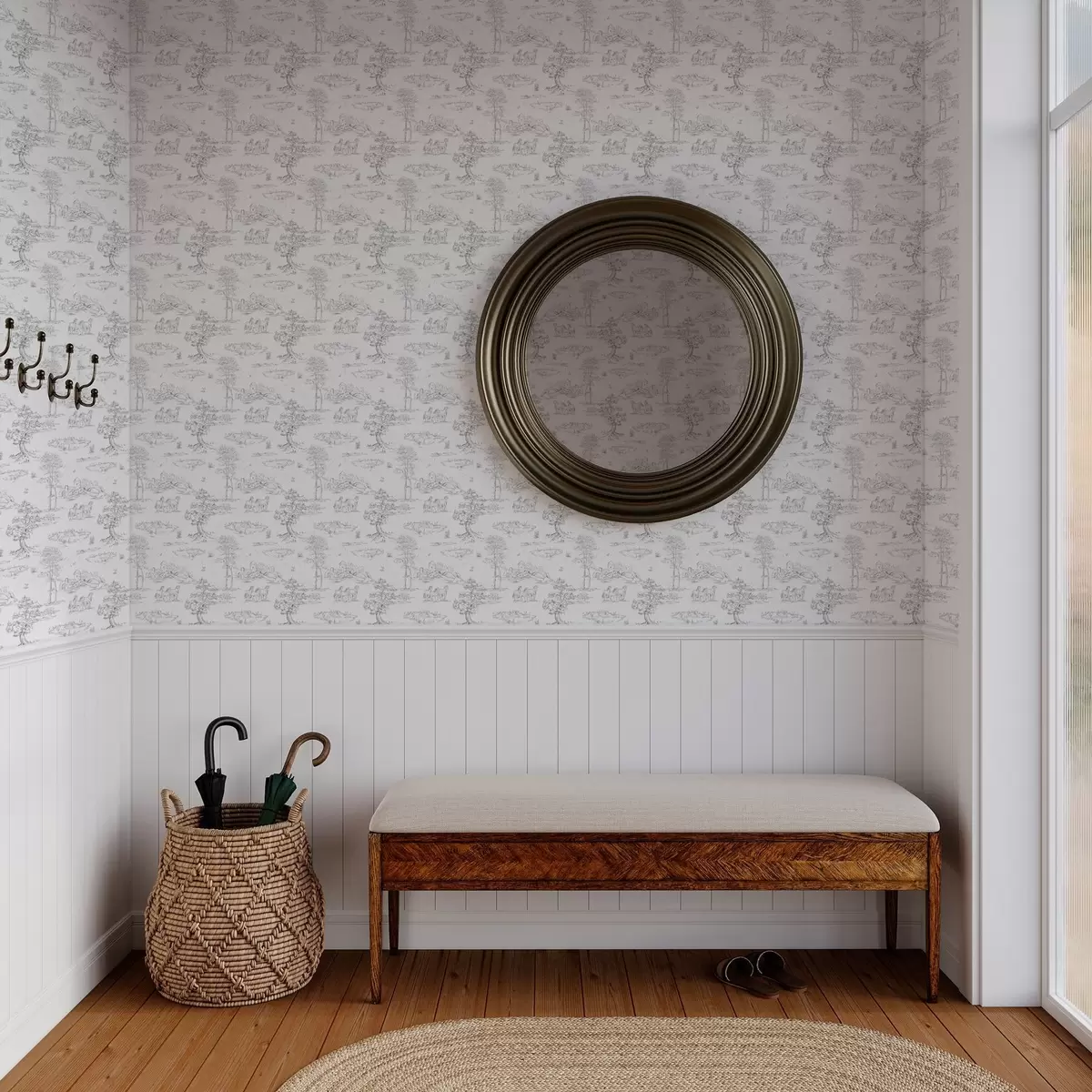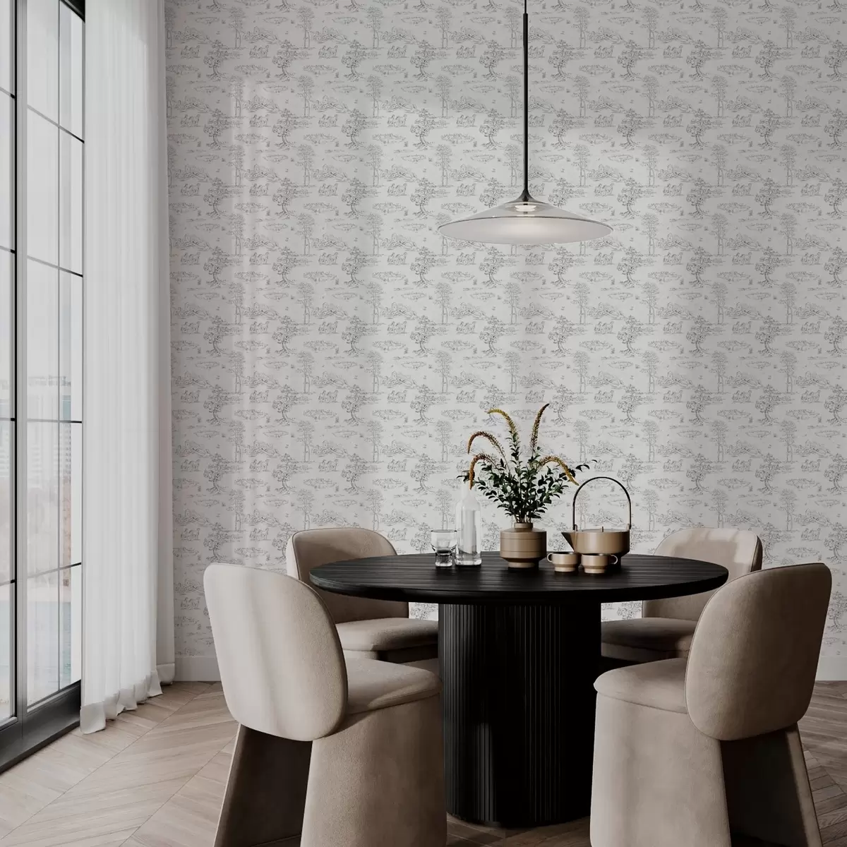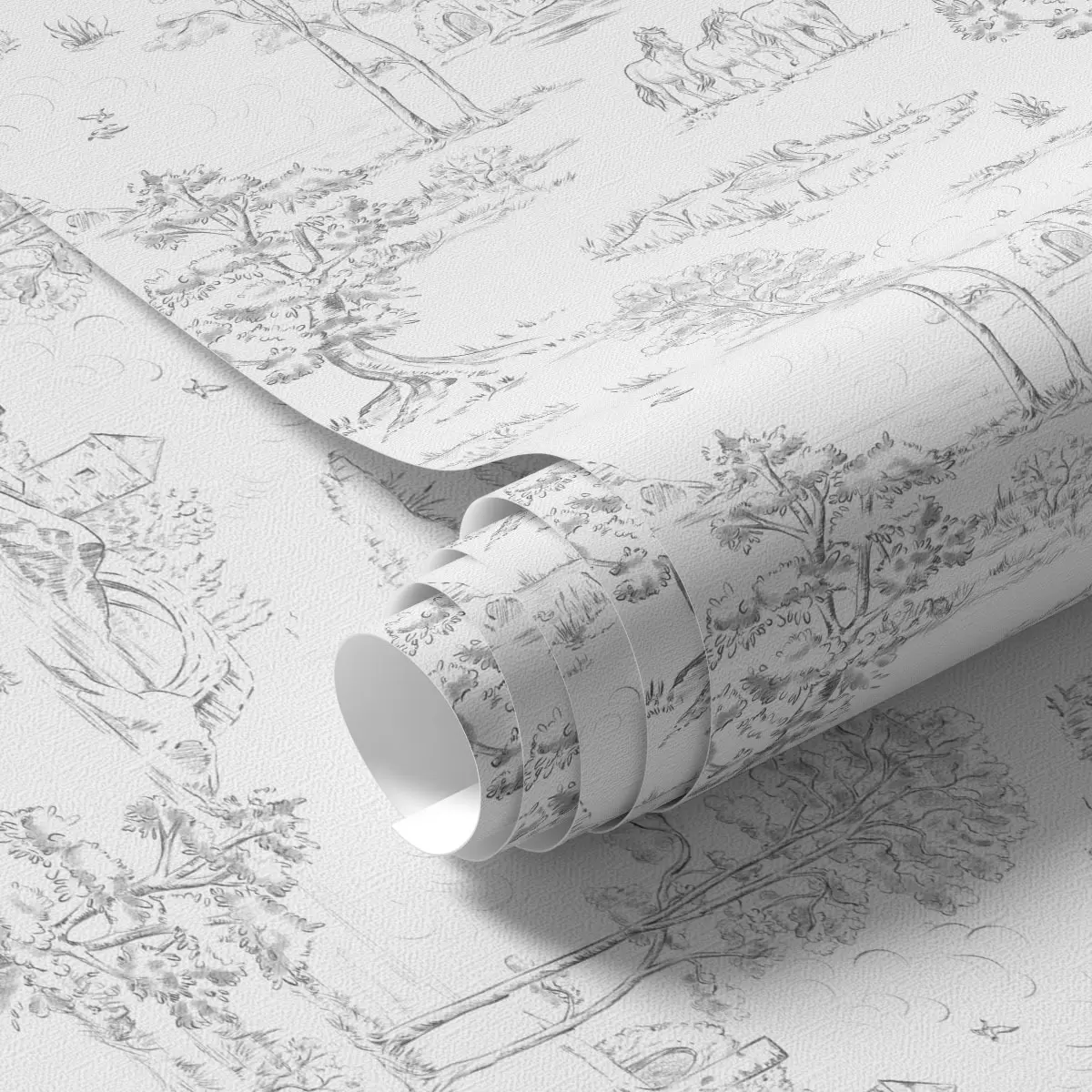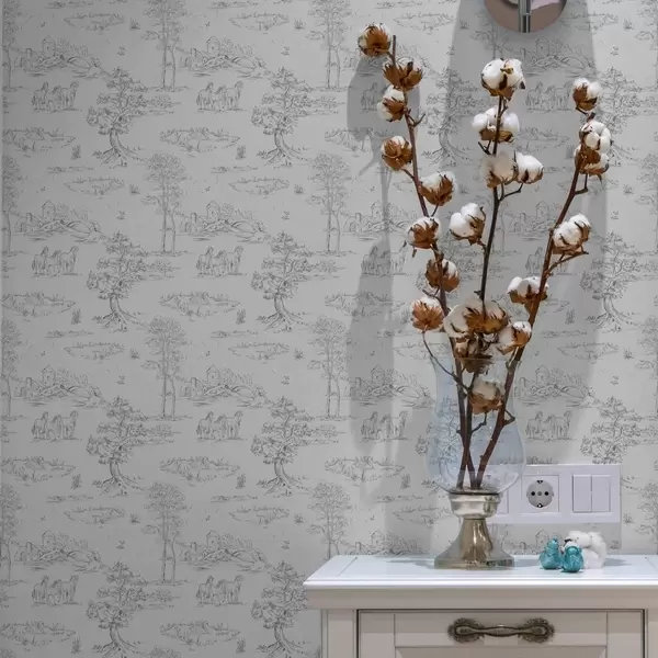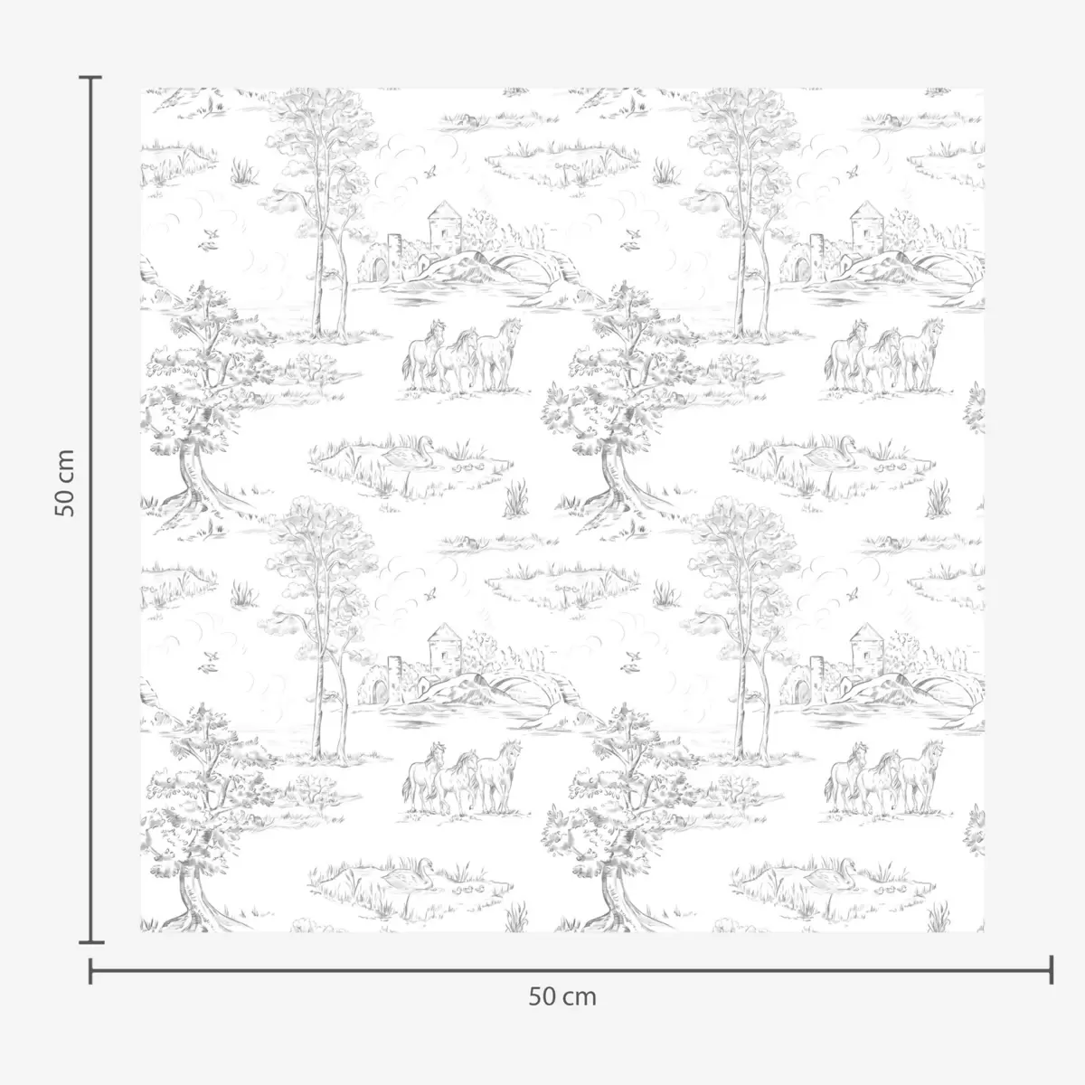 Tapetti Maisema ja hevoset harmaa ja valkoinen tyyliin Nr. a00133v2