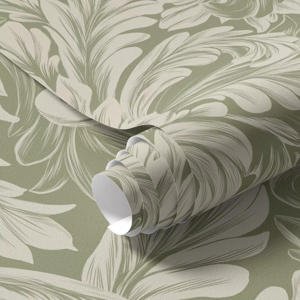 Taustakuva Barokki, jossa kermanväriset lehdet vihreällä pohjalla a00135