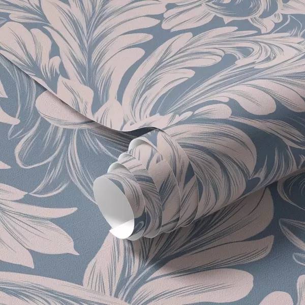 Tapetti Kasvien kiharat kerman sävyisinä sinisellä ja harmaalla pohjalla Nr. a00135v2