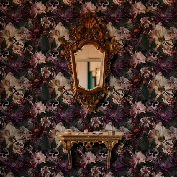 Tapetti Taidekukkapainatus tummissa väreissä Nr. a00147