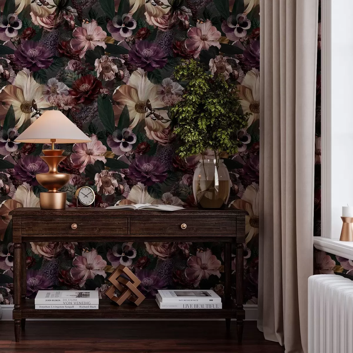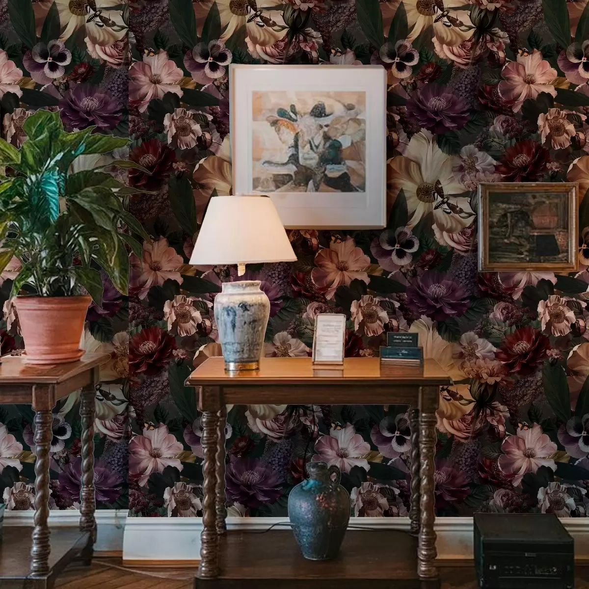 Tapetti Taidekukkapainatus tummissa väreissä Nr. a00147