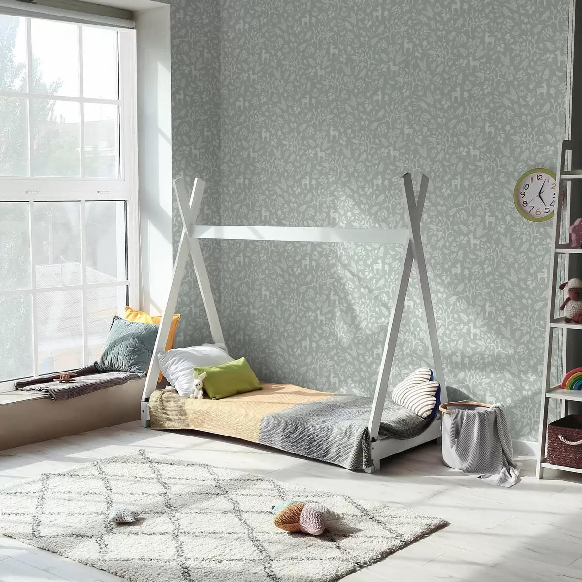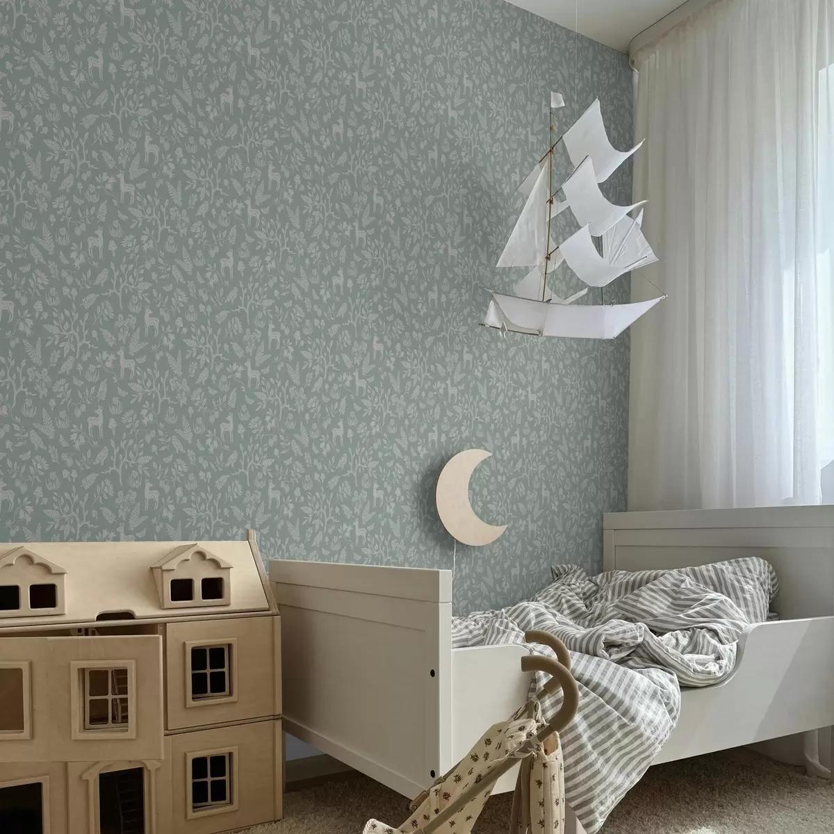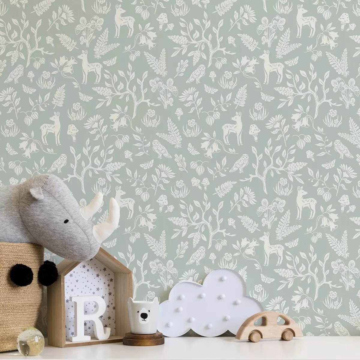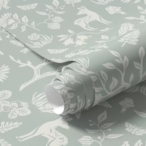 Tapetti Skandinaavisia eläimiä ja kasveja minttutaustalla Nr. a00149
