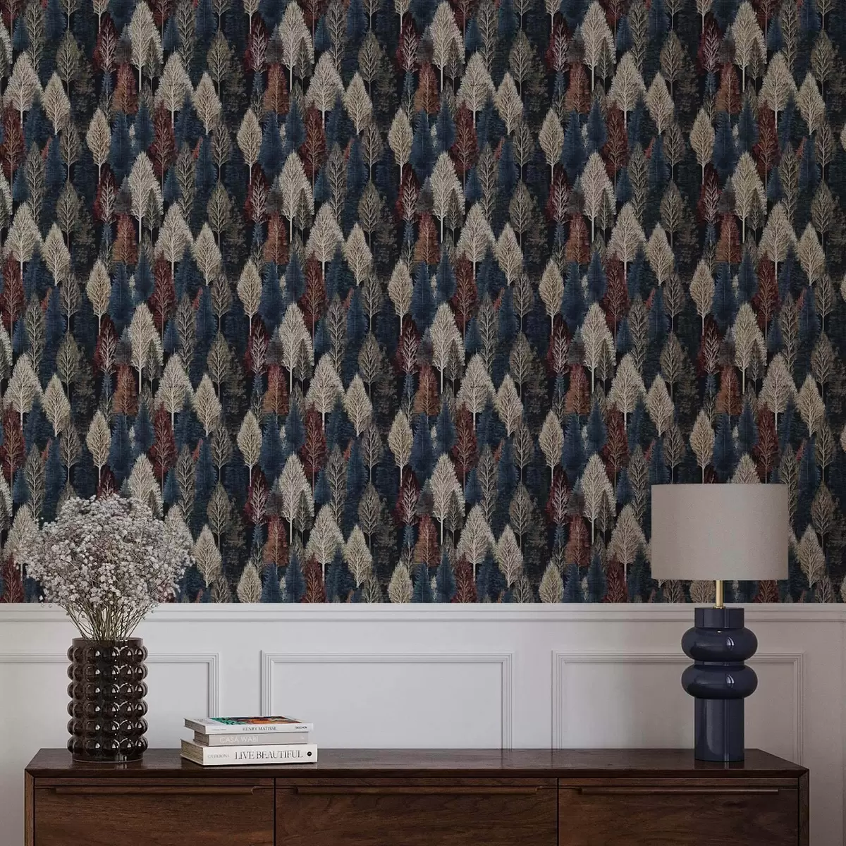 Tapetti Abstrakti metsä puita tummansinisellä taustalla Nr. a00150