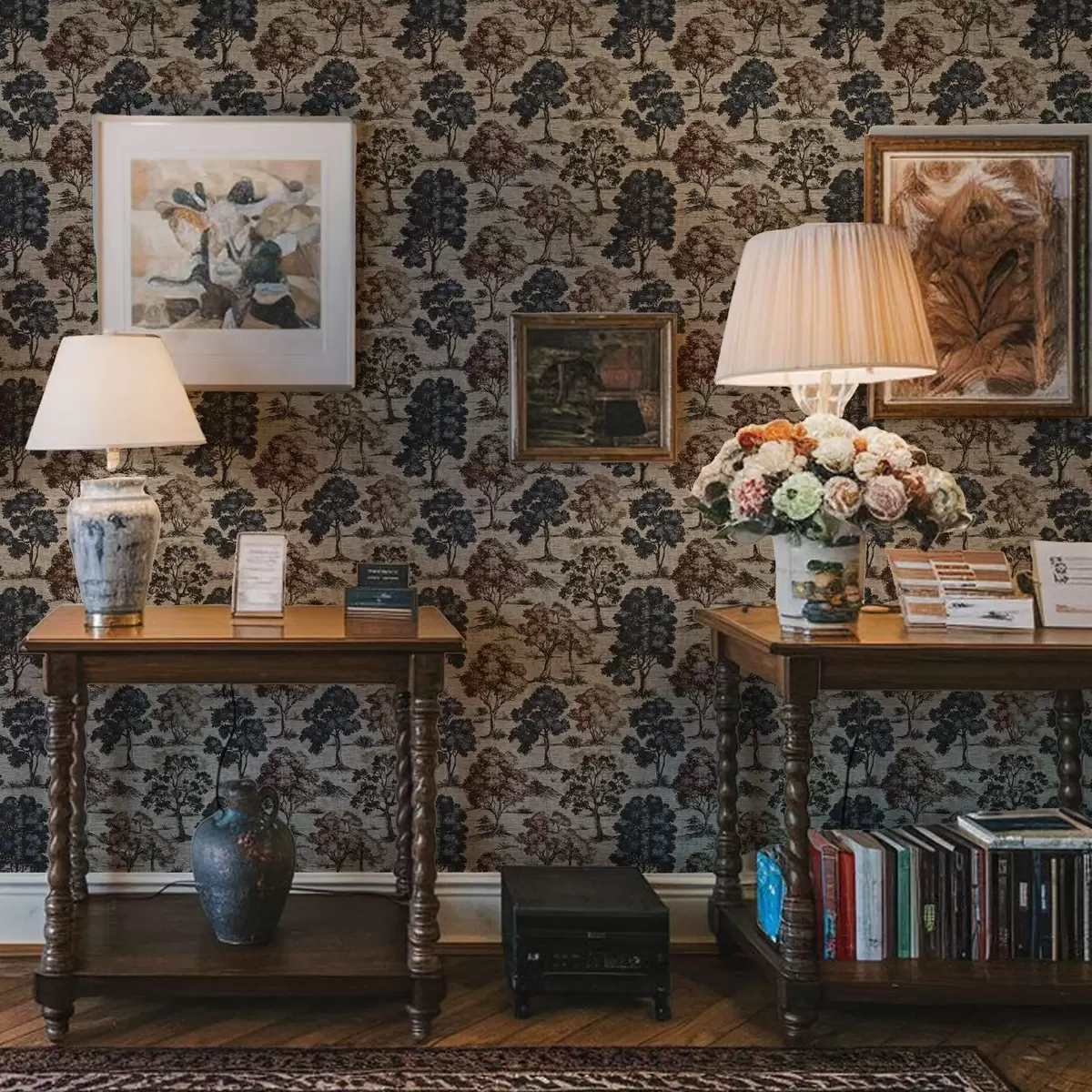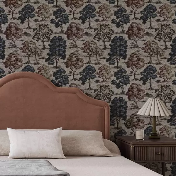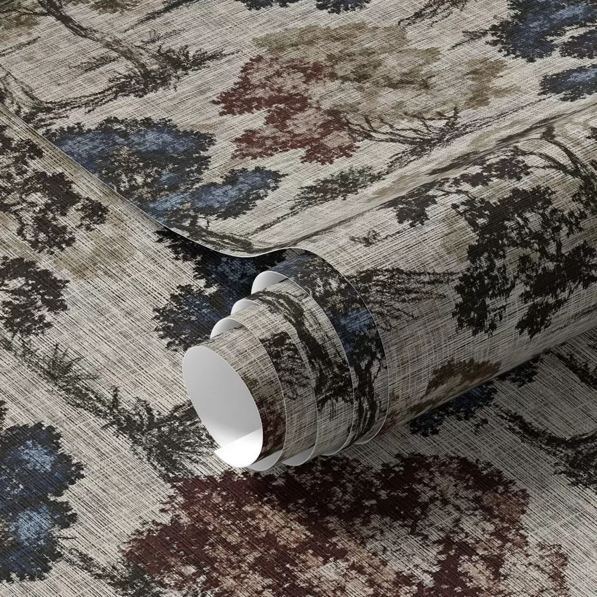 Tapetti Graafinen puita vaalealla pellavataustalla Nr. a00152