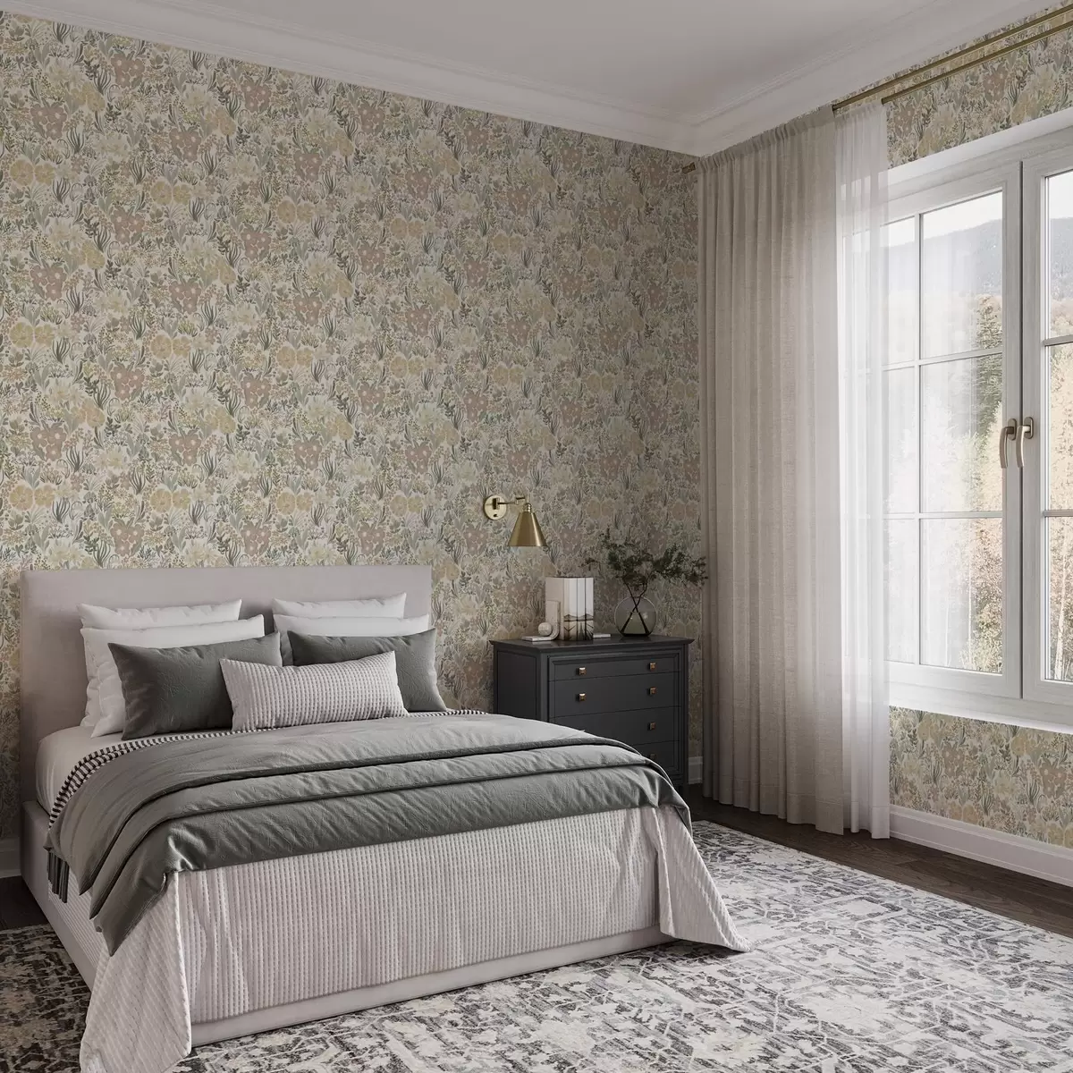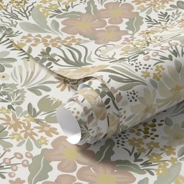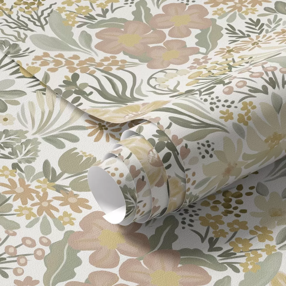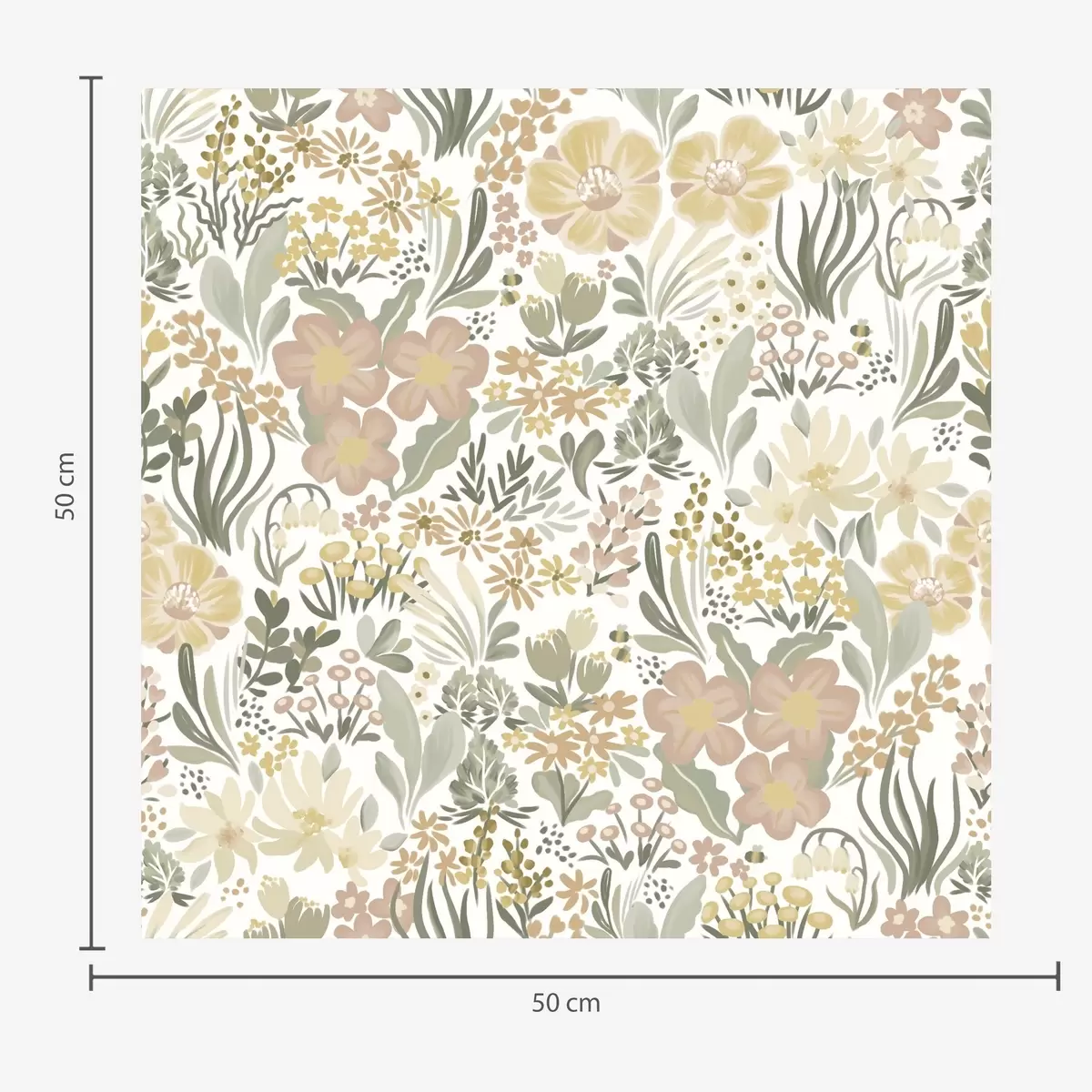 Tapetti Akvarelli luonnonkukkia kermanvärisellä pohjalla Nr. a00154